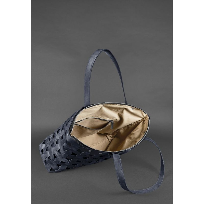 Кожаная плетеная женская сумка Пазл Xl синяя Crazy Horse