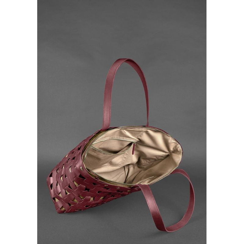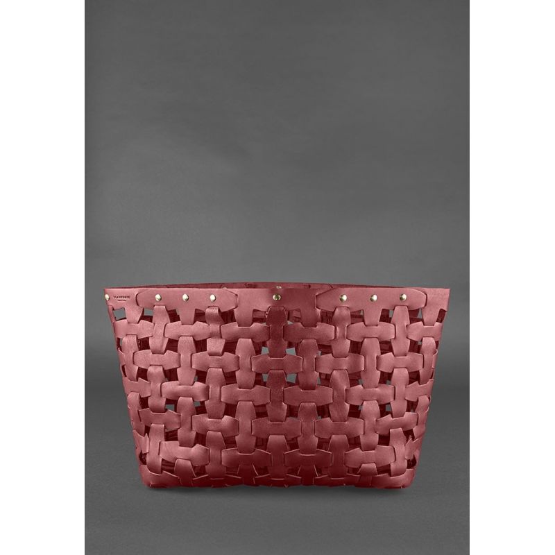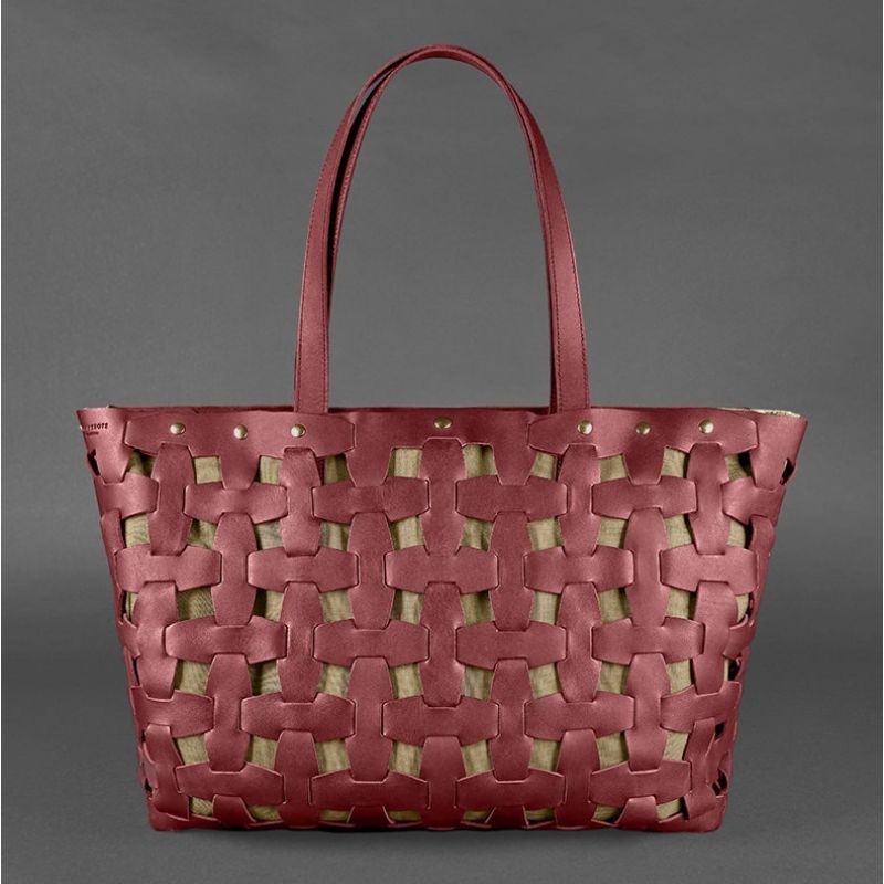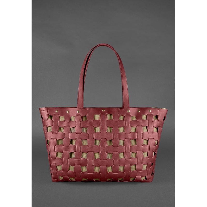 Кожаная плетеная женская сумка Пазл Xl бордовая Krast