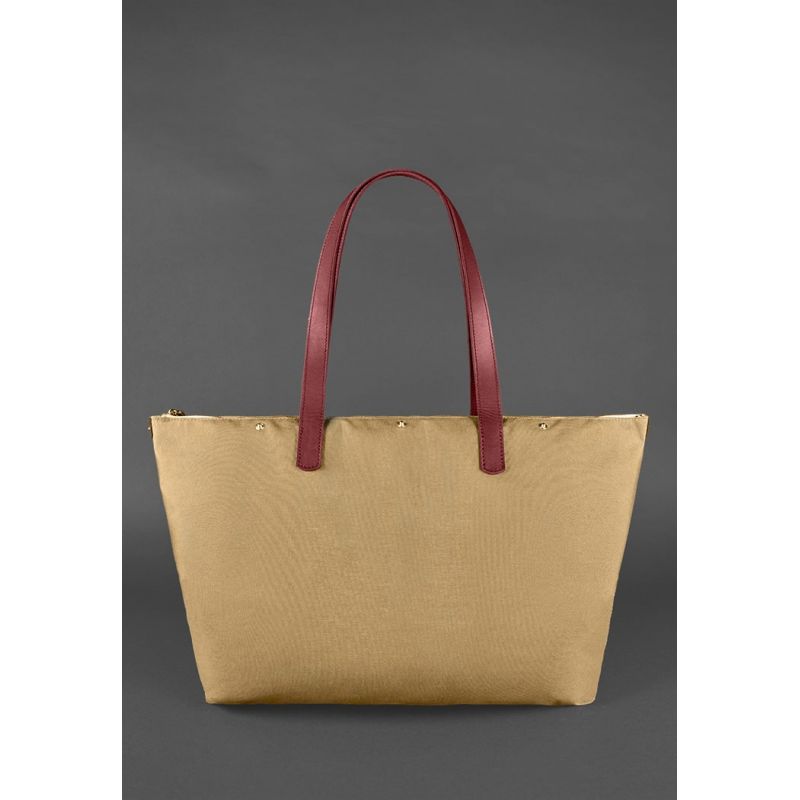 Красивый кожаный каркас сумки изготовлен из полосок натуральной кожи Краст в бордовом цвете. К нему металлическими кнопками пристёгивается внутренний текстильный мешок, который можно легко снять, чтобы постирать или почистить.