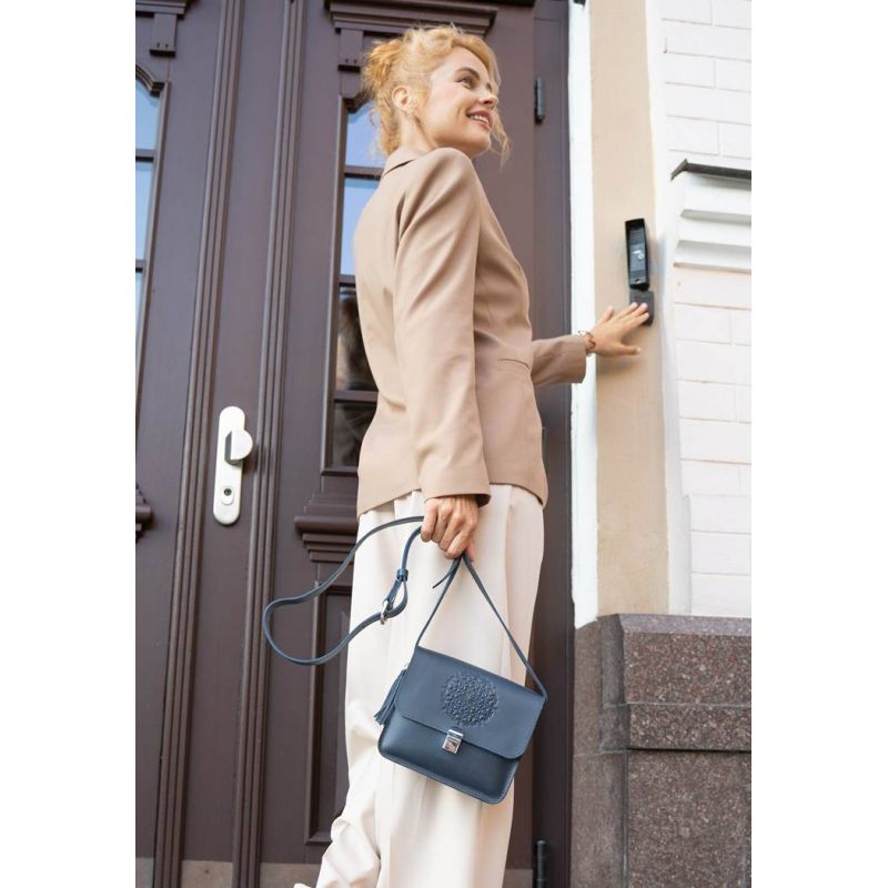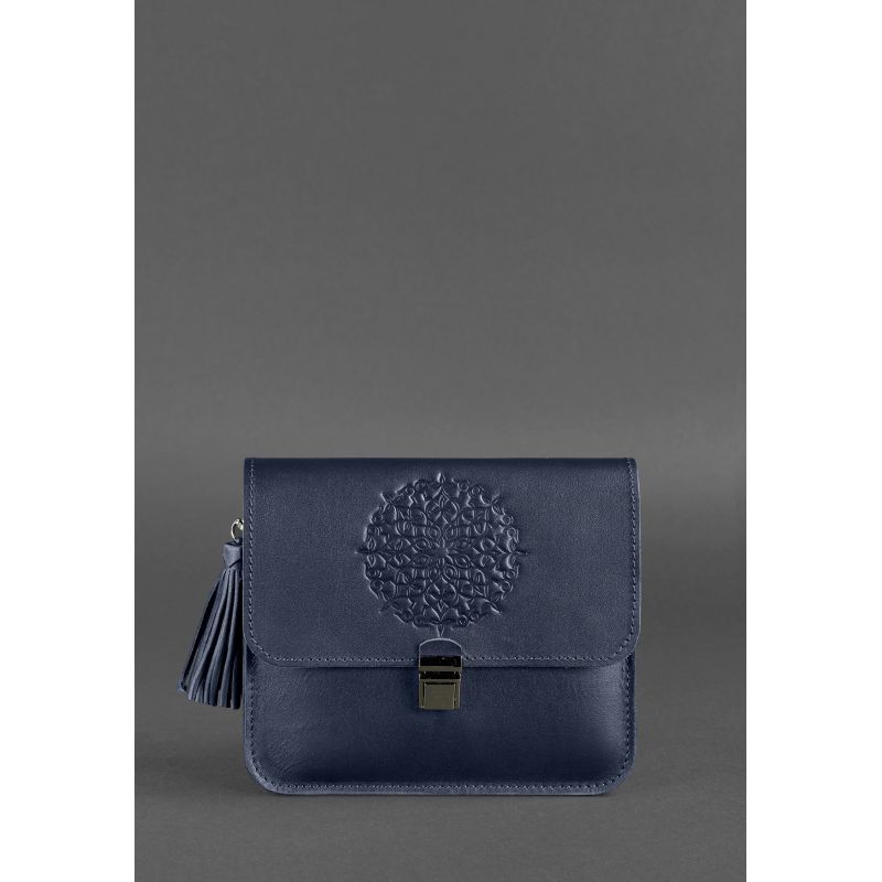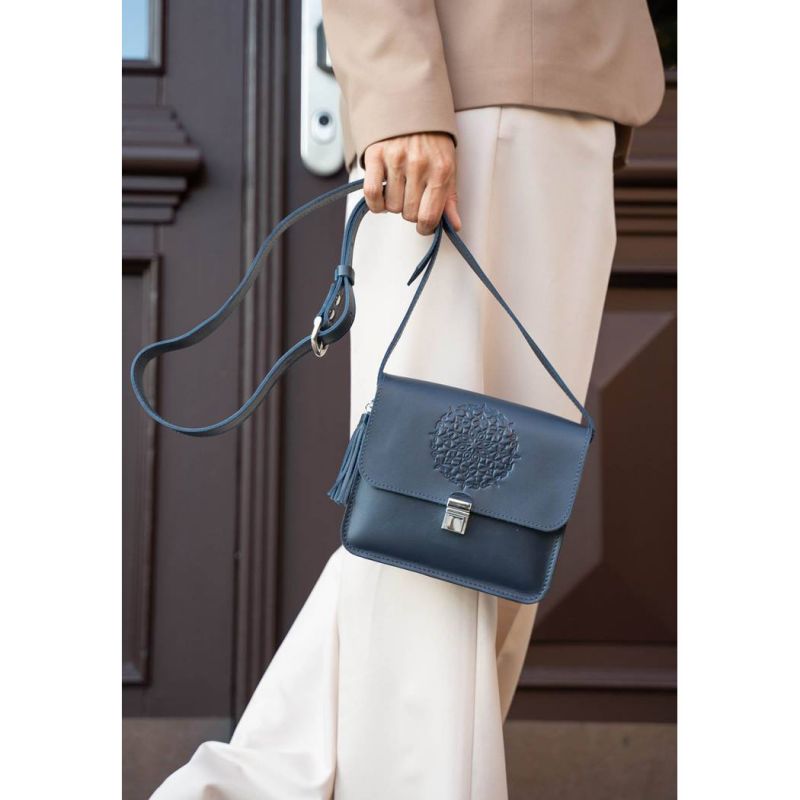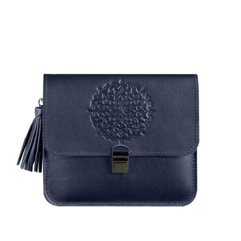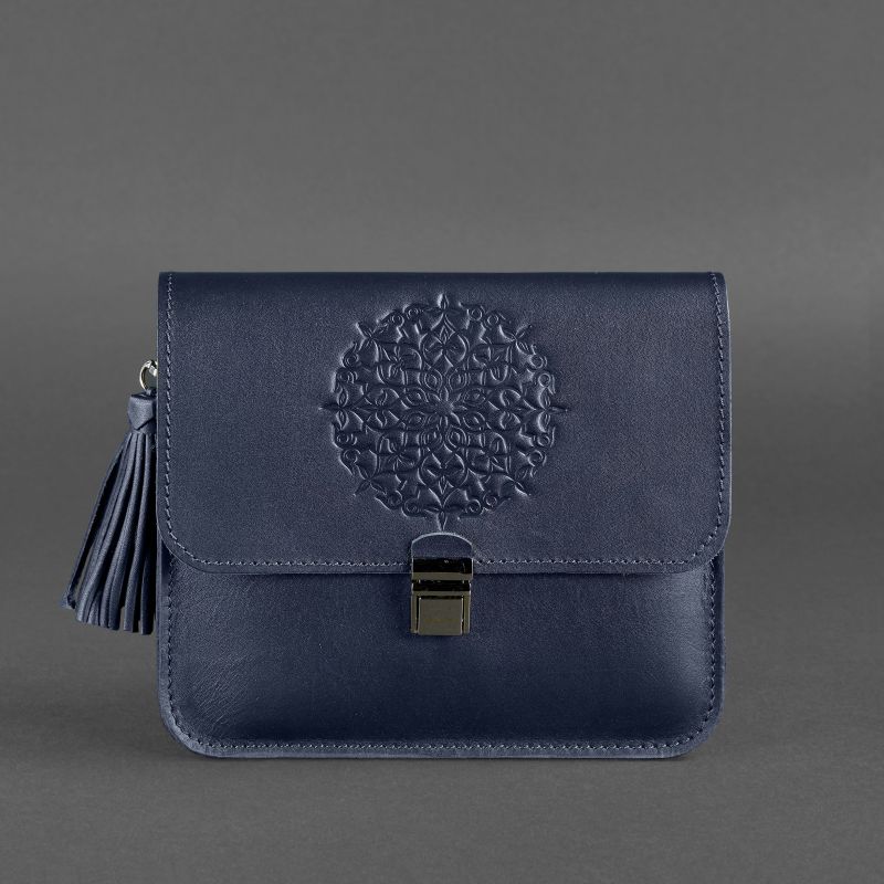 Удобная и стильная сумочка кросс-боди в синем цвете станет отличным дополнением и к летнему легкому платью, и к осеннему пальто. Как и любой аксессуар, изготовленный из натуральной кожи, эта сумочка обладает индивидуальный характером и неповторимым шармом. Плотная кожа краст хорошо держит форму и не нуждается в дополнительной подкладке. Внутреннее пространство аксессуара разделено на две секции: одно просторное отделение и карман для планшета, телефона или документов. А также имеется несколько небольших кармашков для мелочей. Закрывается сумка клапаном на стильный портфельный замок. Нежную женственную нотку в дизайн сумки добавляет тиснение в виде индийской мандалы на клапане. Носить сумку удобно на плече или через плечо на длинном кожаном ремешке. Длина ремешка регулируется. Упакован аксессуар в крафтовую коробку. В подарок к сумке Вы получаете: Съемную кисточку, которая служит милым украшением и может использоваться как брелок.  Холдер для наушников и проводов в темно-синем цвете. Забудьте о спутанных проводах Тетрадку с повторением мотива «мандала». Гарантия на сумку - 3 года с момента покупки. Фурнитура и комплектация может быть изменена производителем