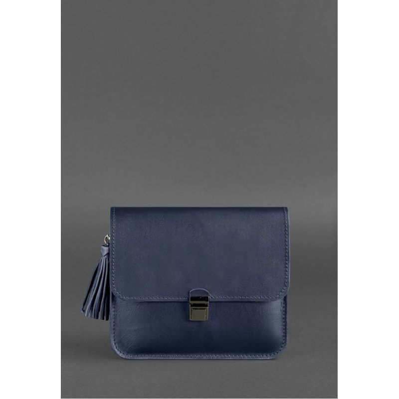 Кожаная женская бохо-сумка Лилу темно-синяя