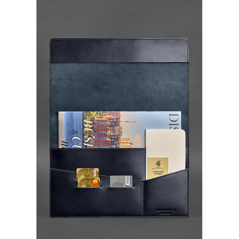 Универсальная темно-синяя кожаная папка для документов – незаменимый аксессуар для делового человека.