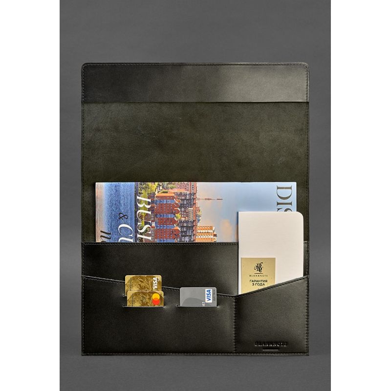 Очень солидно и стильно выглядит деловая папка из натуральной кожи. Универсальный черный цвет подойдет и мужчинам, и женщинам, а лаконичный дизайн отлично дополнит деловой костюм.