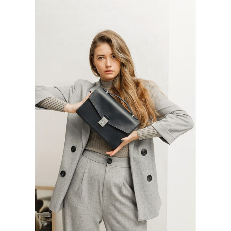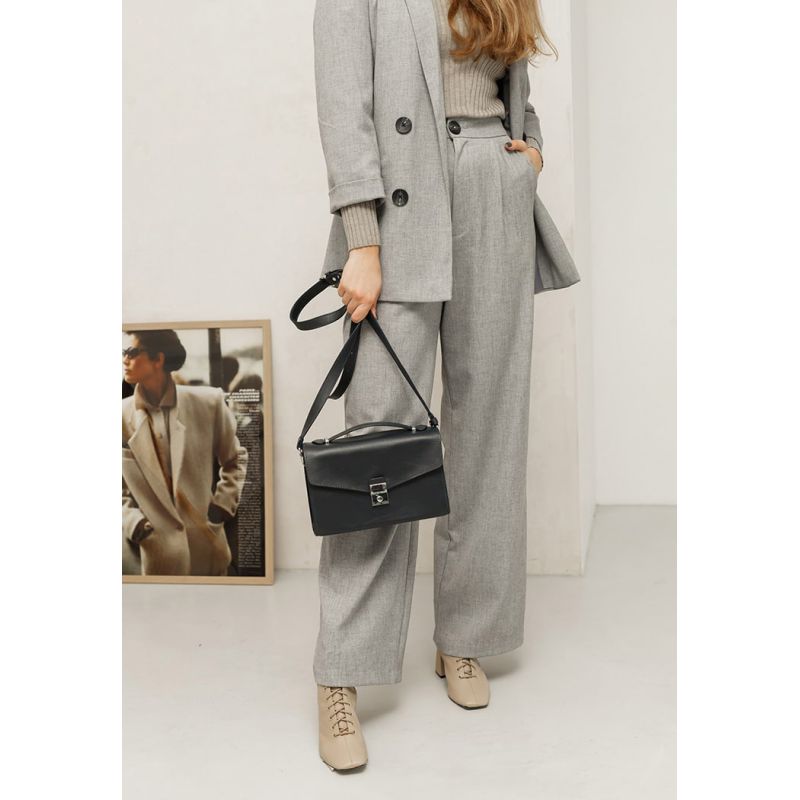 Закрывается сумочка на клапан с лаконичным металлическим замком.