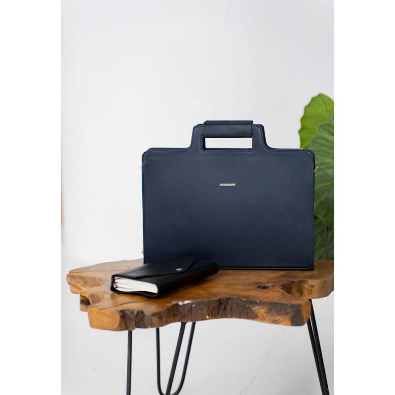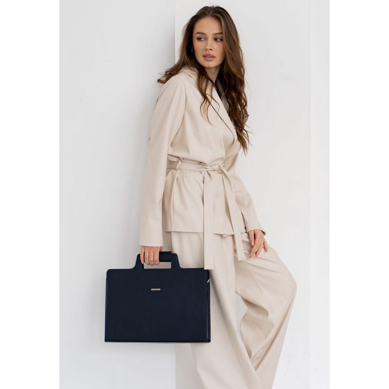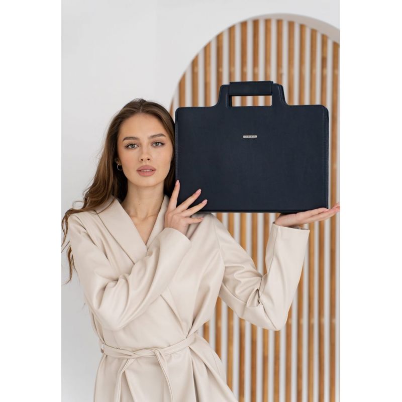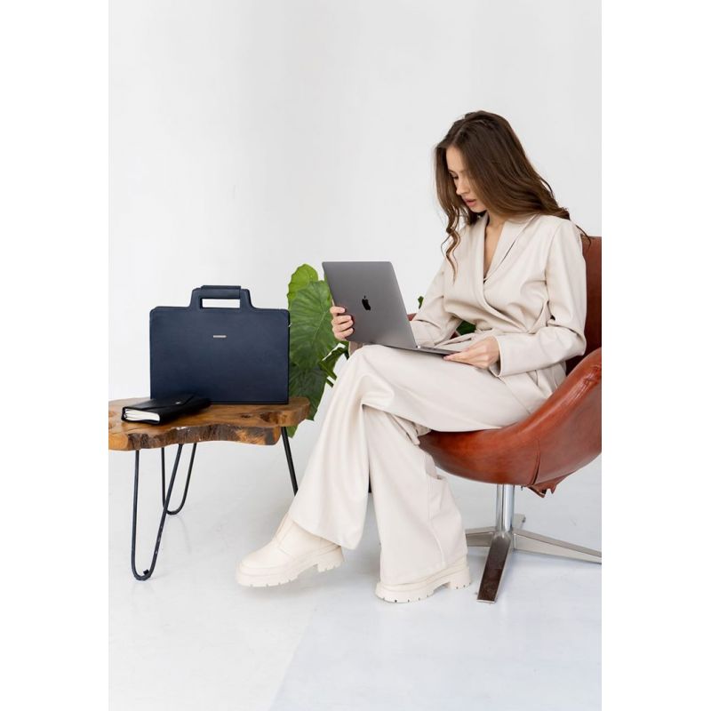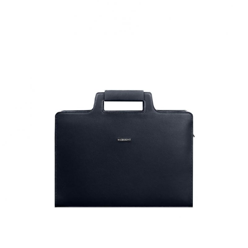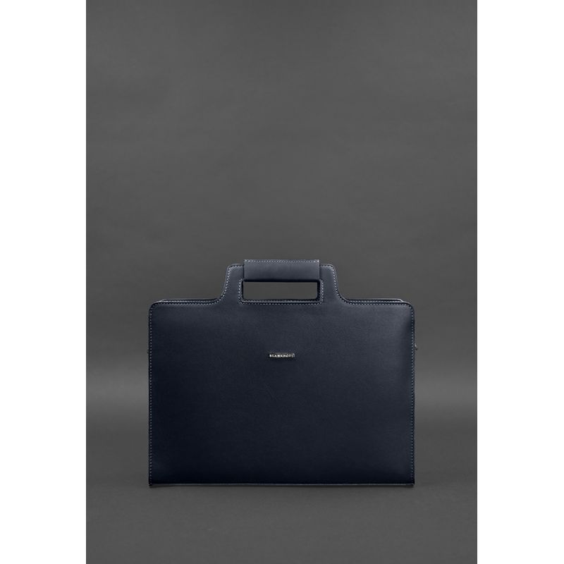 Кожаная сумка для ноутбука и документов темно-синяя Краст