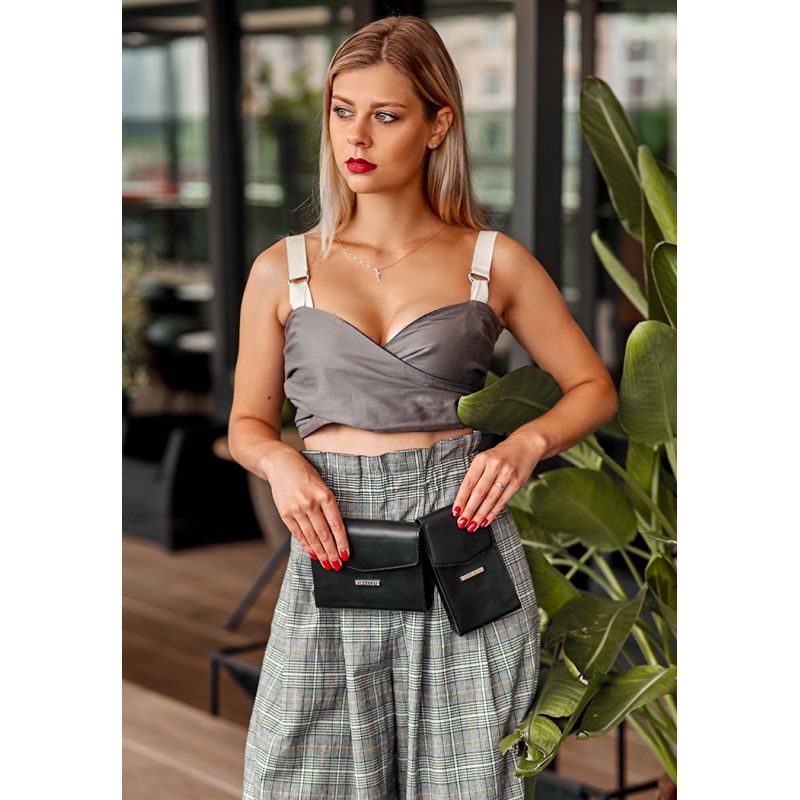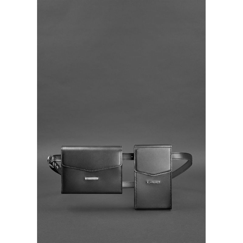 Набор женских черных кожаных сумок Mini поясная/кроссбоди