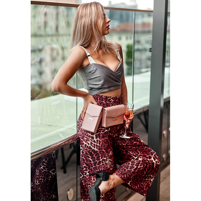 Набор женских розовых кожаных сумок Mini поясная/кроссбоди