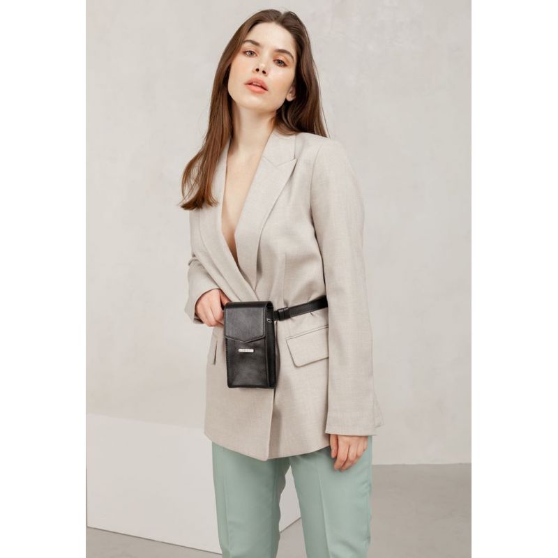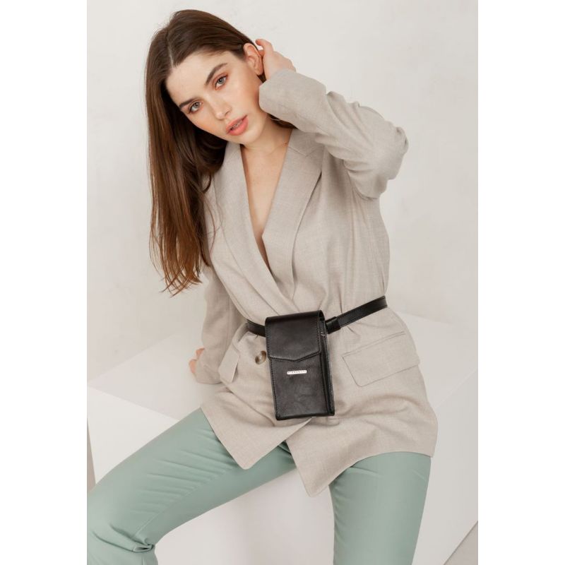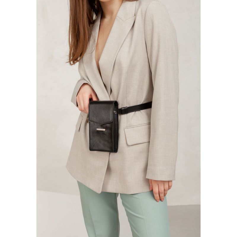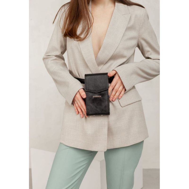 Вертикальная женская кожаная сумка Mini черная поясная/кроссбоди