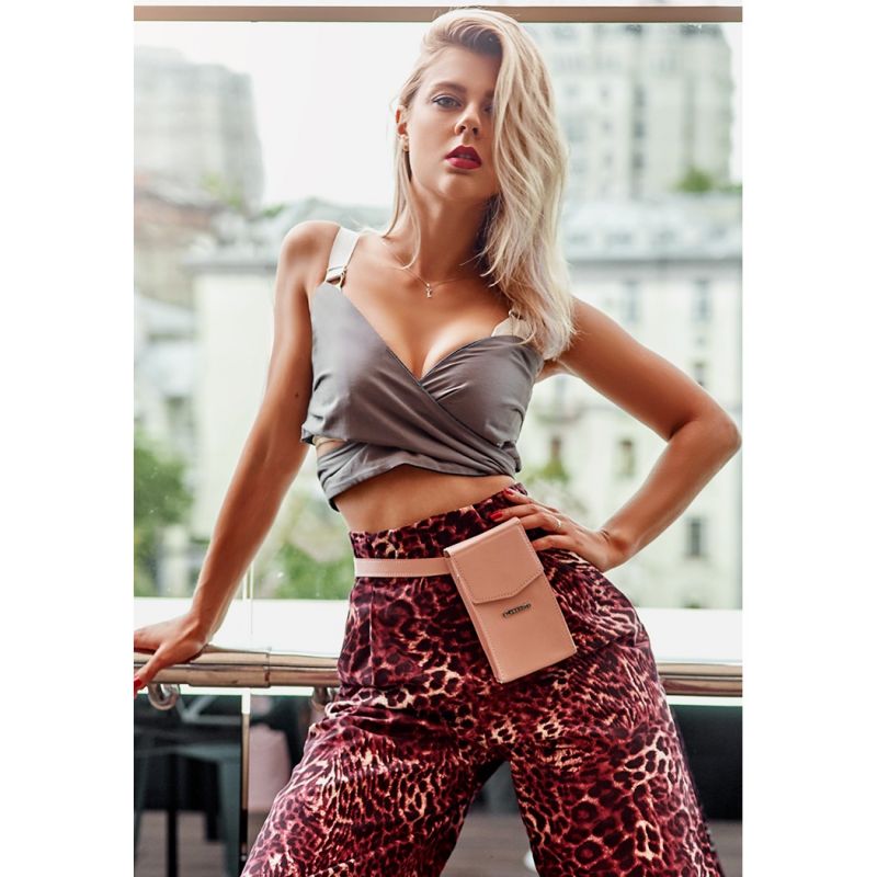 Вертикальная женская кожаная сумка Mini розовая поясная/кроссбоди