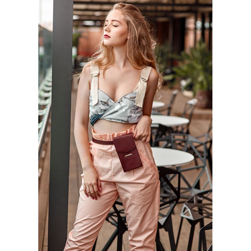 Вертикальная женская кожаная сумка Mini поясная/кроссбоди бордовая