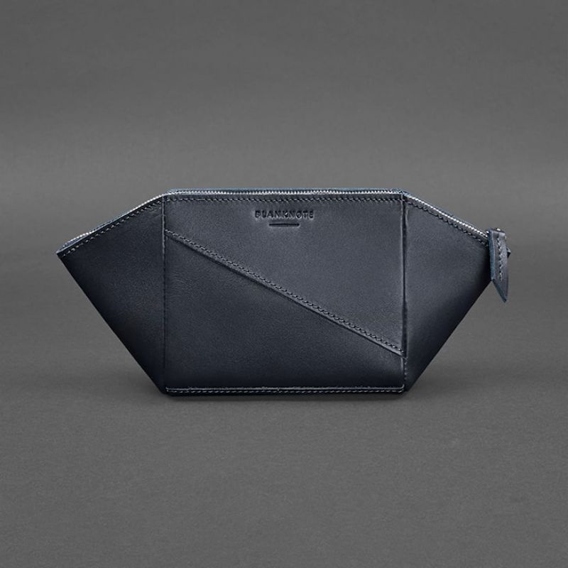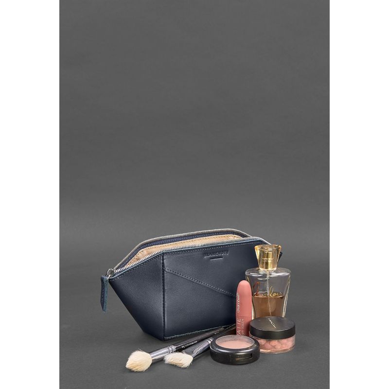 Женская кожаная косметичка 2.0 Краст темно-синяя