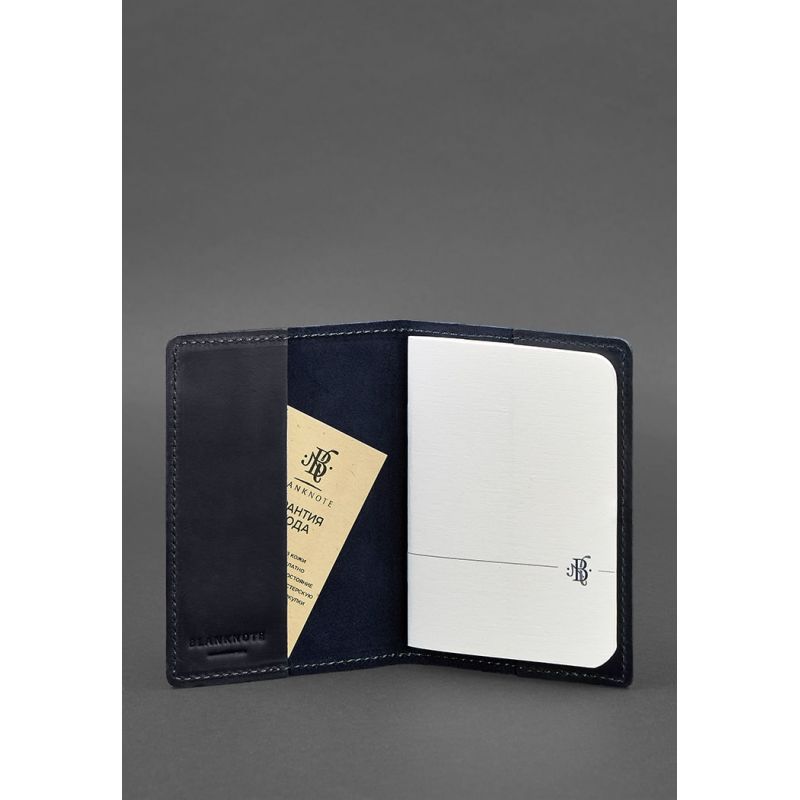 Кожаная обложка для паспорта и военного билета 1.3 синяя Crazy Horse