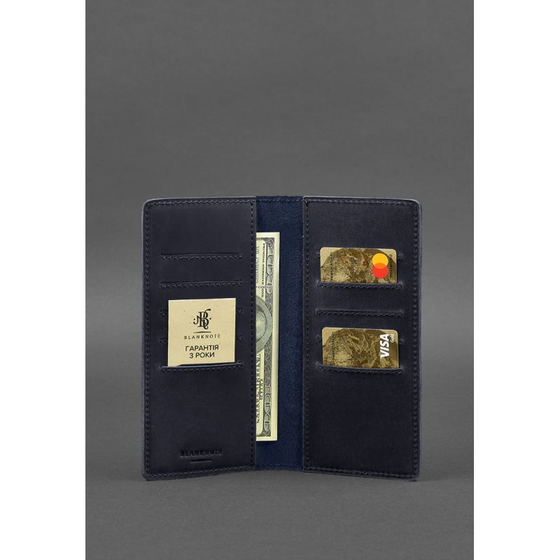 Кожаное портмоне-купюрник 11.0 темно-синее Crazy Horse