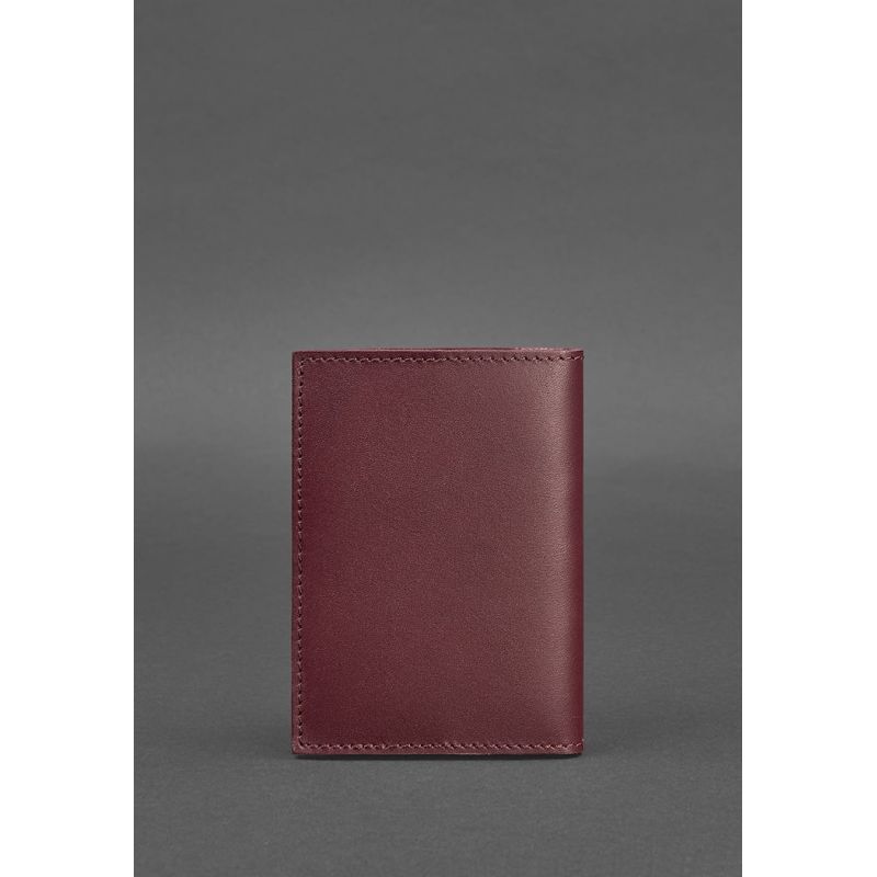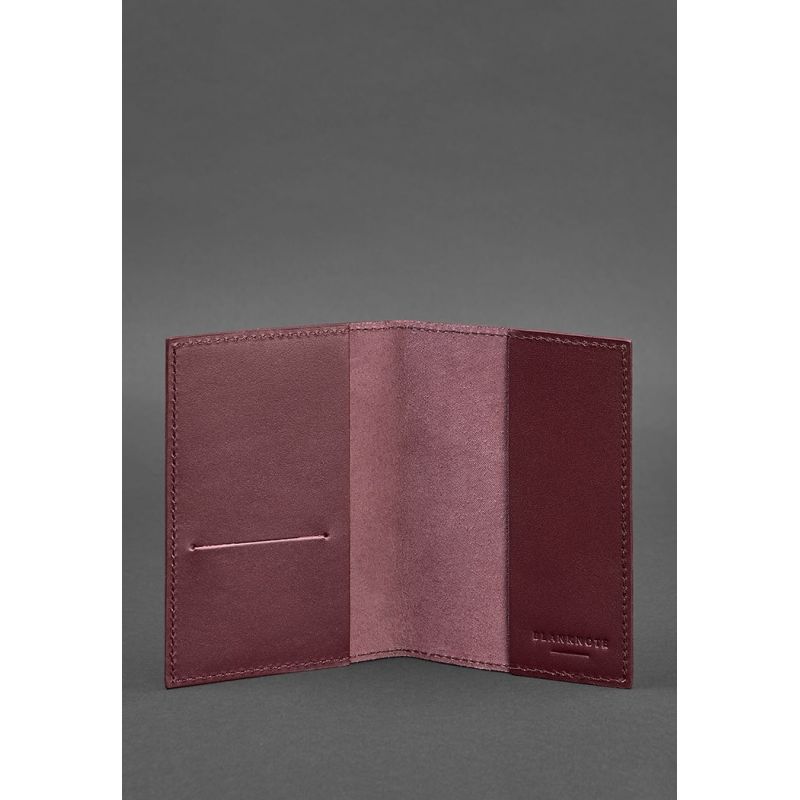 Аксессуар выполнен из натуральной кожи цвета марсала, закрывается по типу книжечки, без фиксации. По краям обложки предусмотрены кожаные вставки, которые надежно фиксируют паспорт внутри. Одна из вставок имеет прорезной карман для карточки, визитки или другого документа. Эту обложку можно использовать для обычного и заграничного паспорта, военного билета и других документов похожего формата.