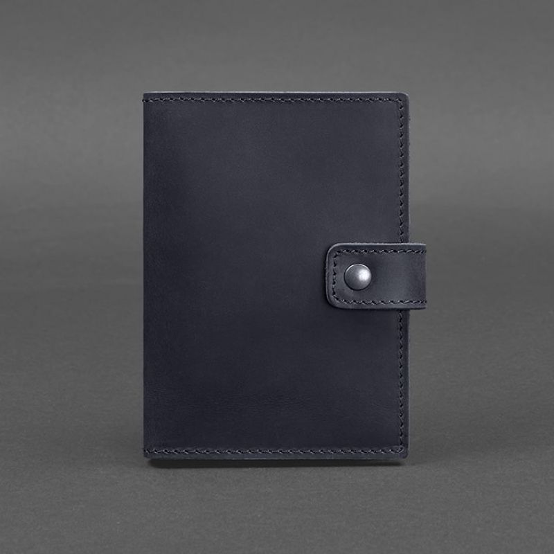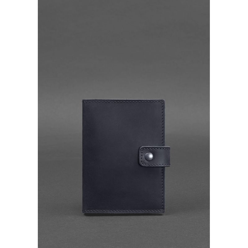 Кожаная обложка для паспорта 5.0 (с окошком) темно-синяя Crazy Horse