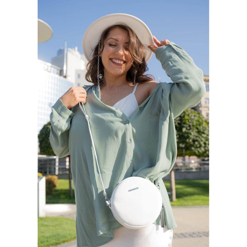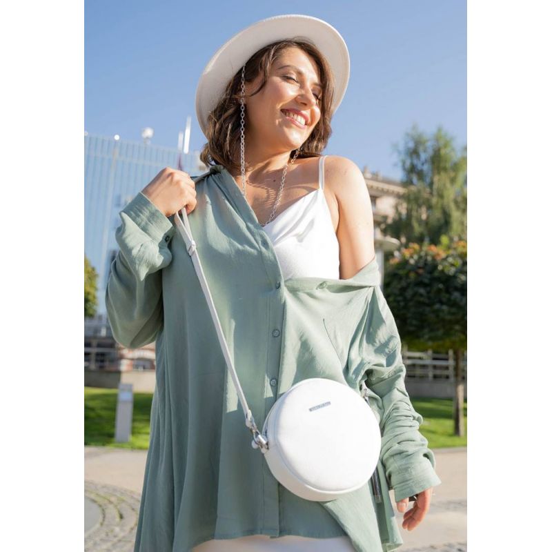 Белая круглая сумочка из натуральной кожи станет отличным дополнением идеального образа современной девушки, которая следит за трендами и модными новинками.