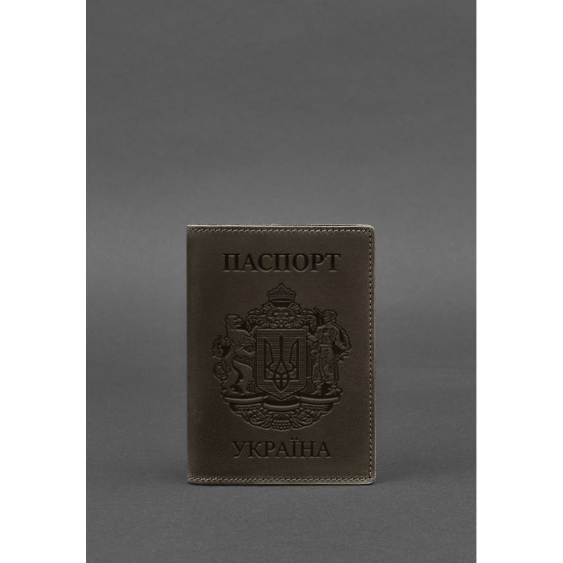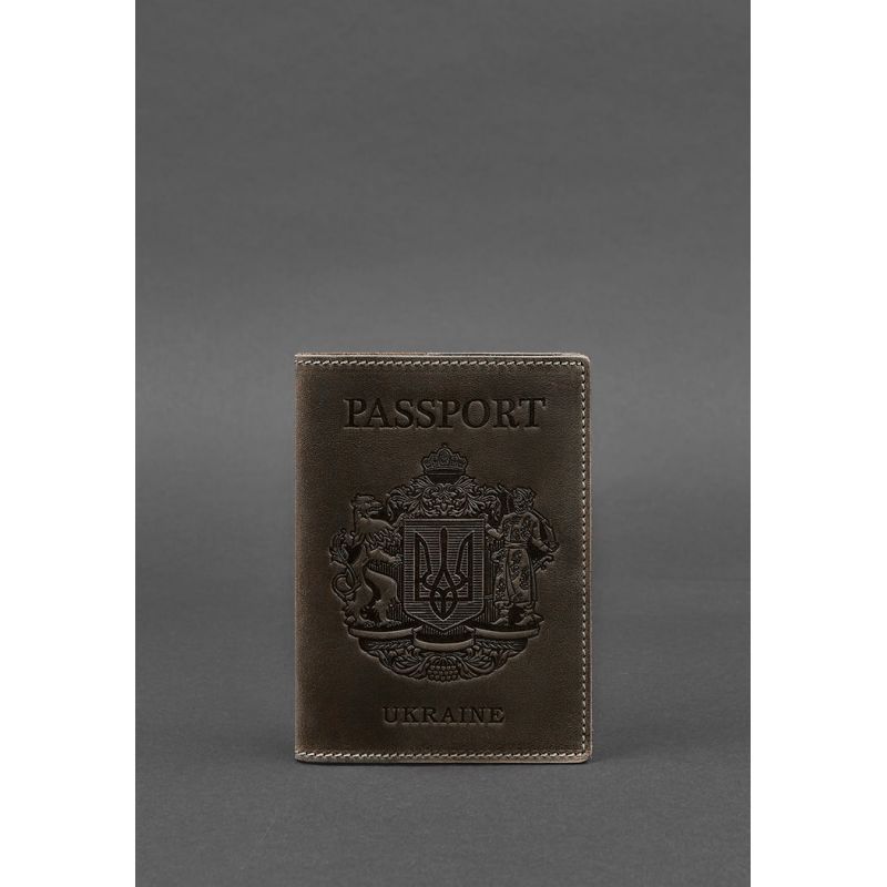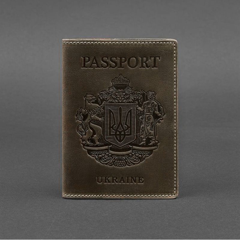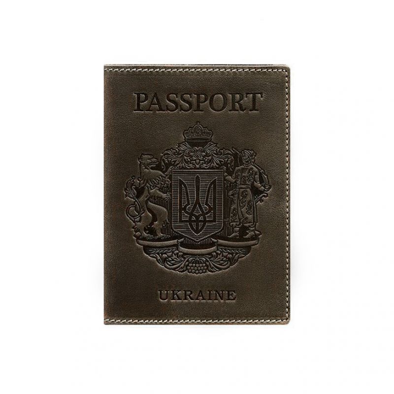Кожаная обложка для паспорта с украинским гербом темно-коричневая