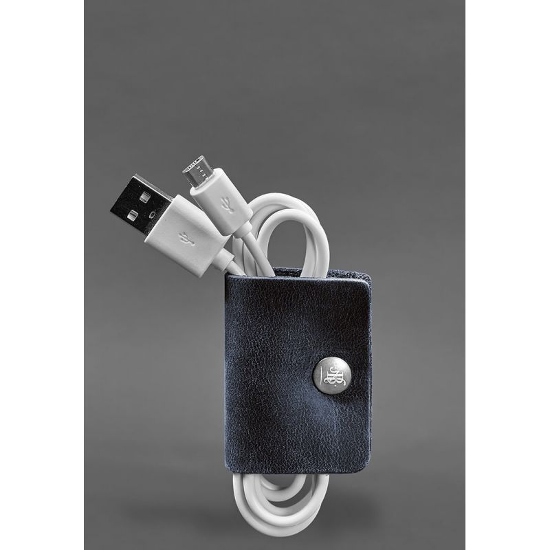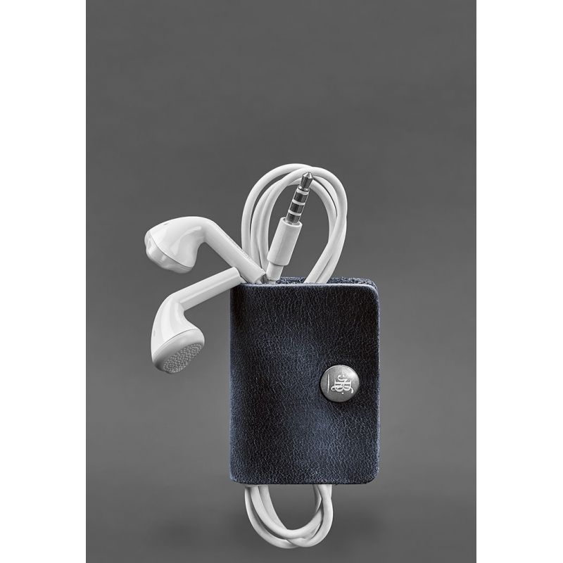 Кожаный холдер для наушников и проводов 2.0 Синий
