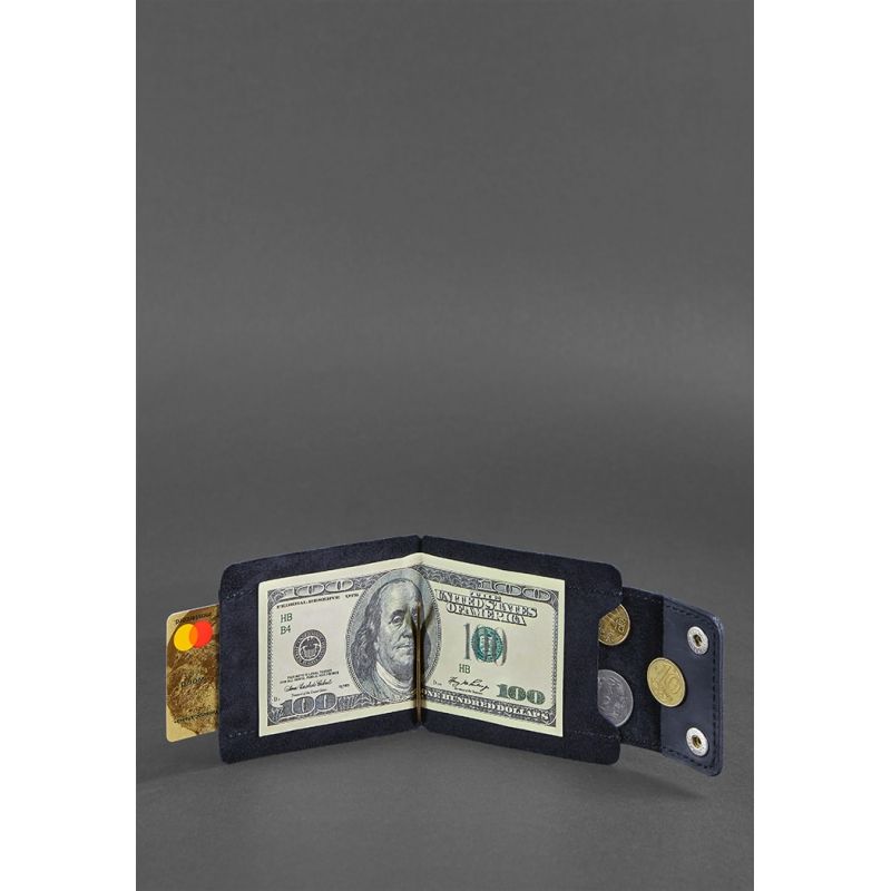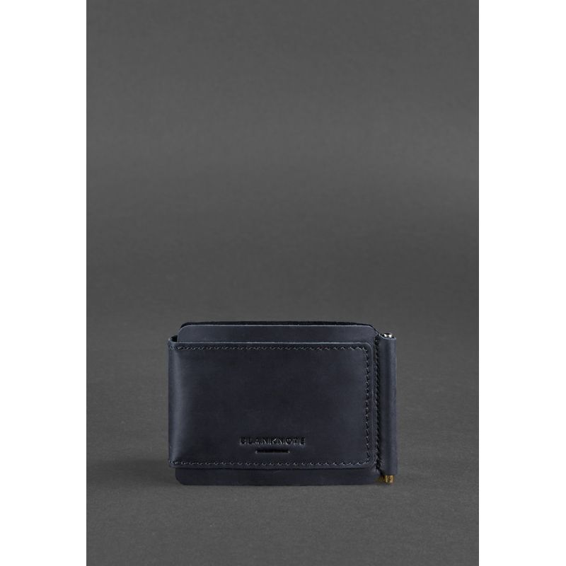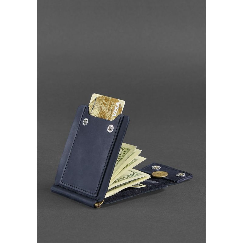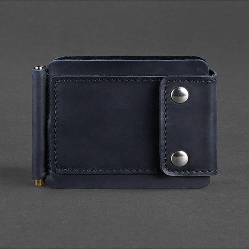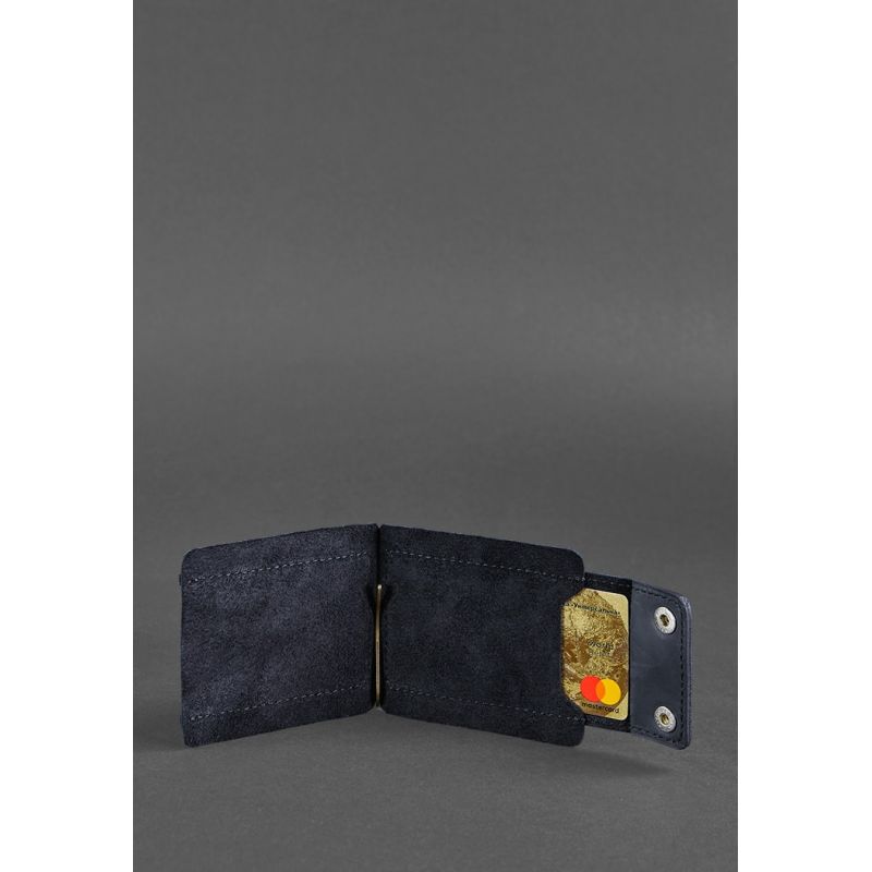 Мужское кожаное портмоне синее 10.0 зажим для денег Crazy Horse