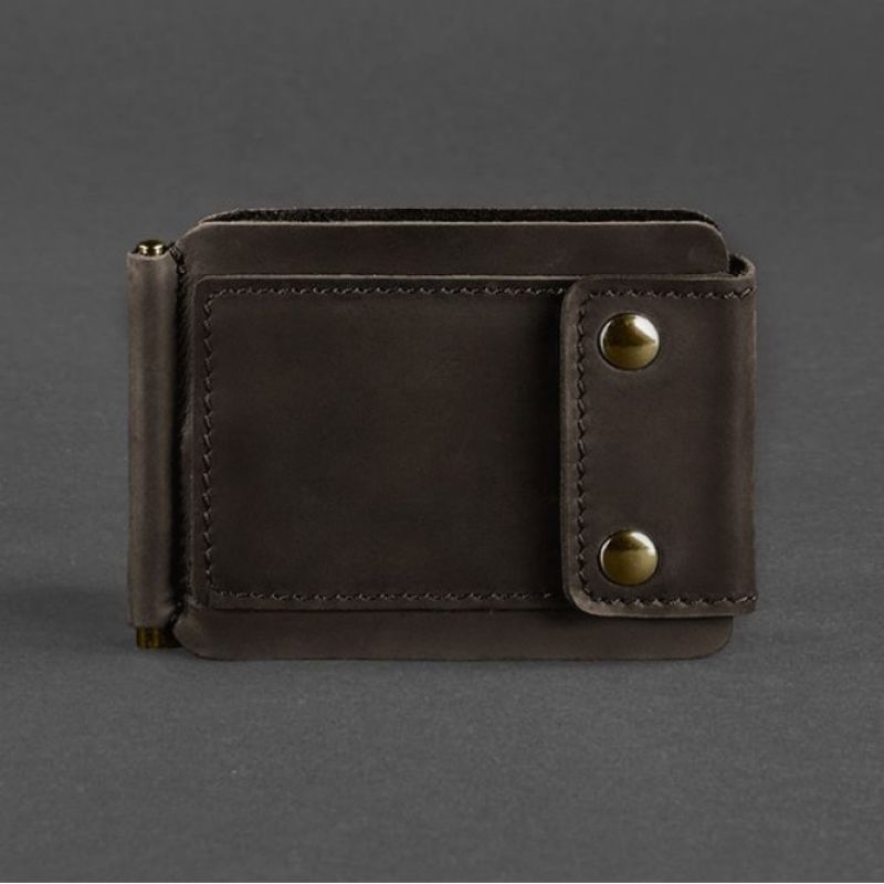 Стильное кожаное портмоне в темо-коричневой коже идеально дополнит образ современного мужчины. Внутри аксессуара имеется металлический зажим, который надежно зафиксирует купюры, а две прочные кнопки предотвратят распахивание портмоне.