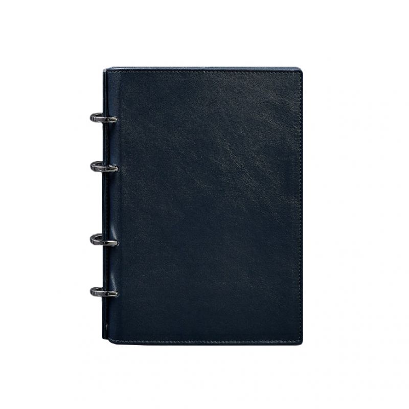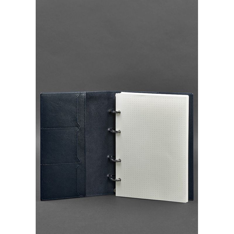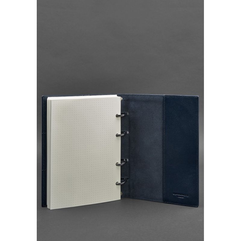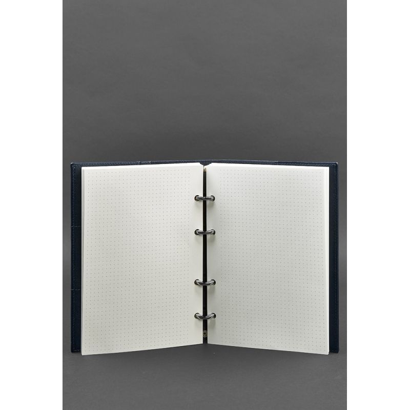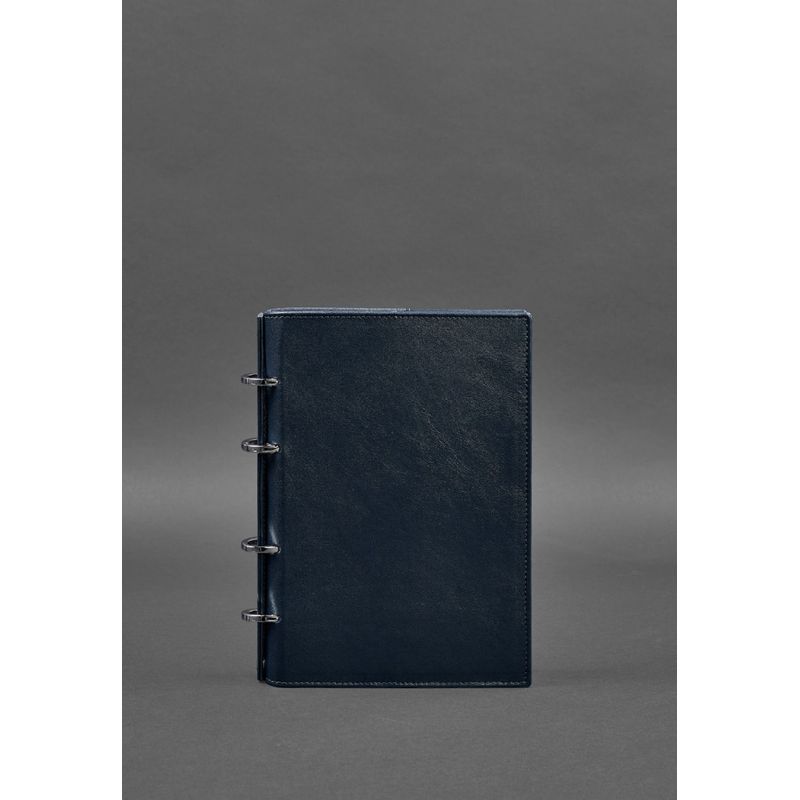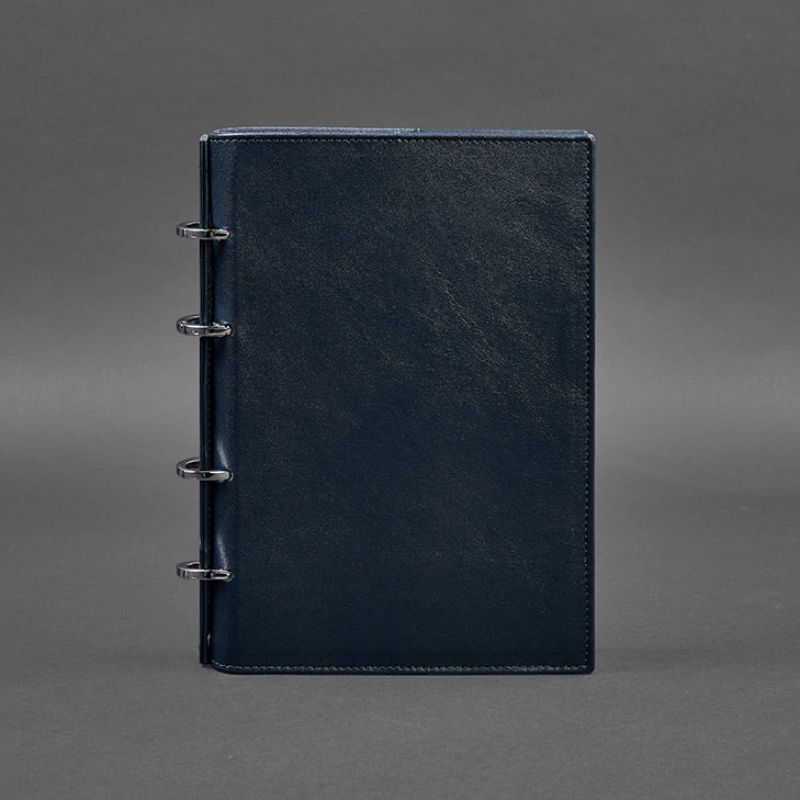 Кожаный блокнот на кольцах (софт-бук) 9.0 с твердой синей обложкой