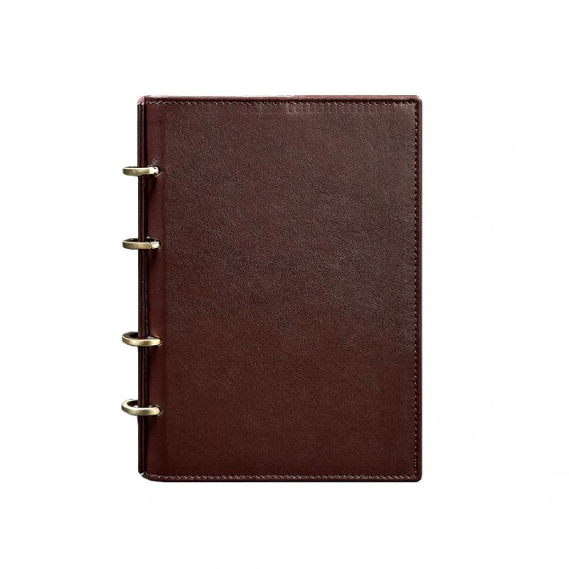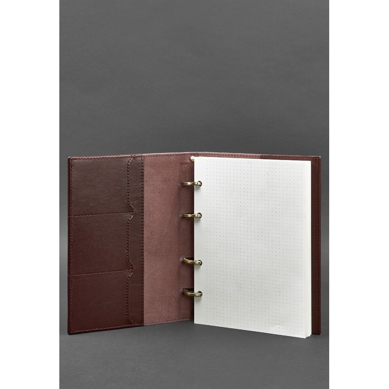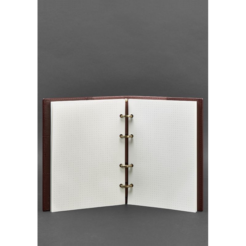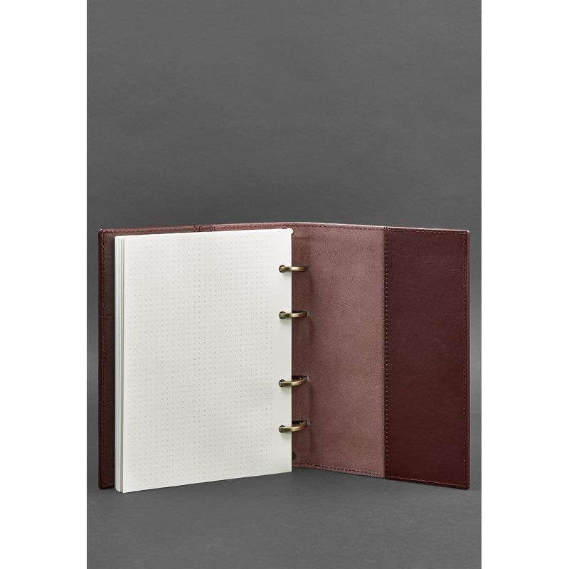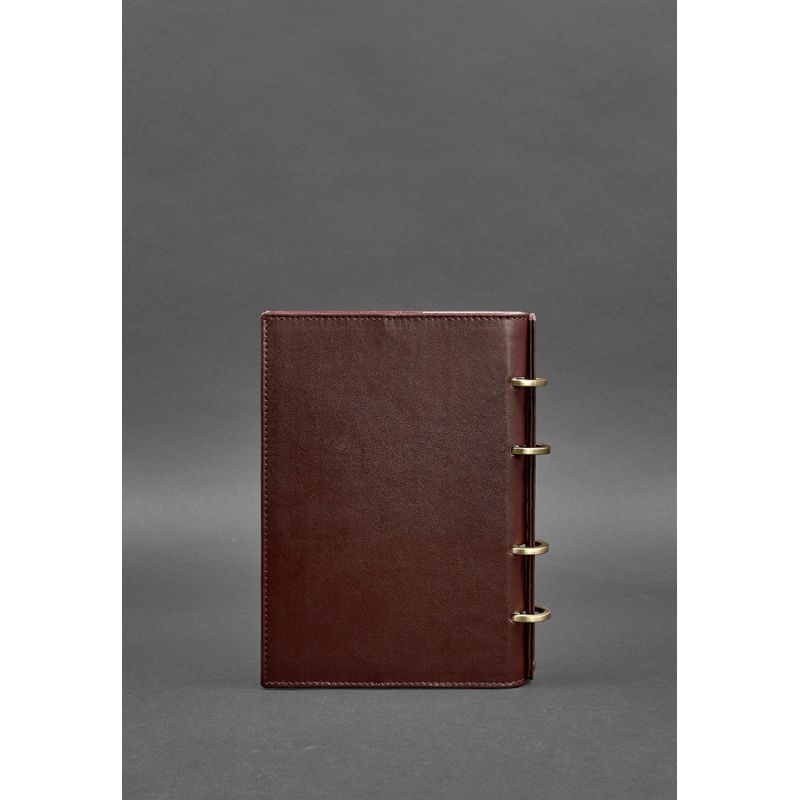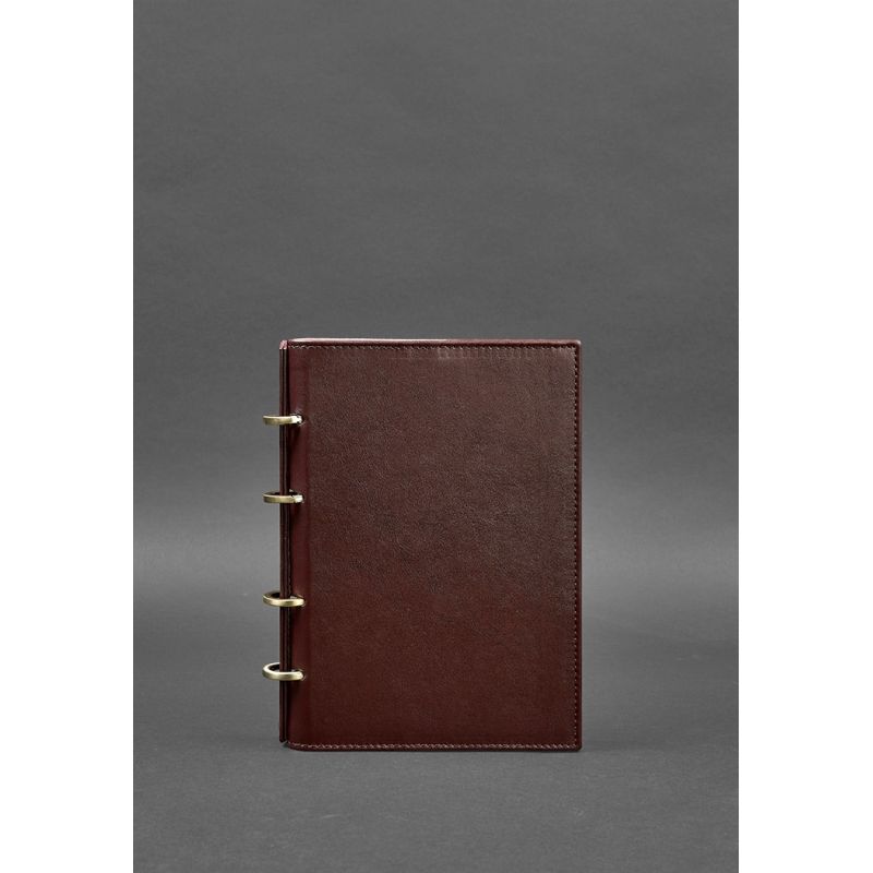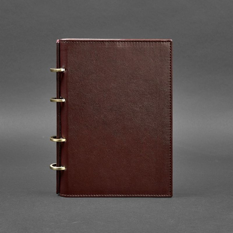 Кожаный блокнот на кольцах (софт-бук) 9.0 с твердой бордовой обложкой