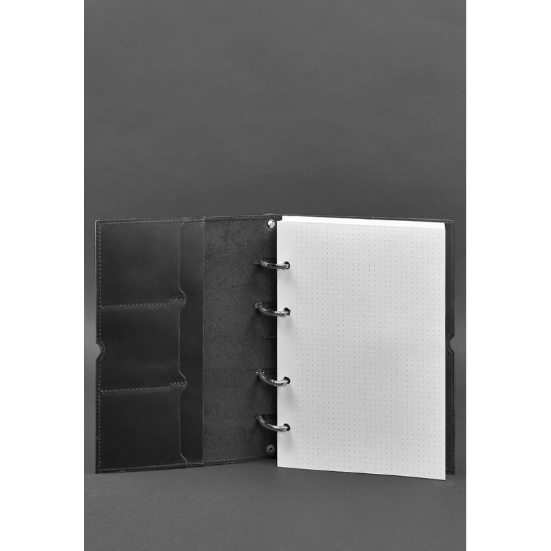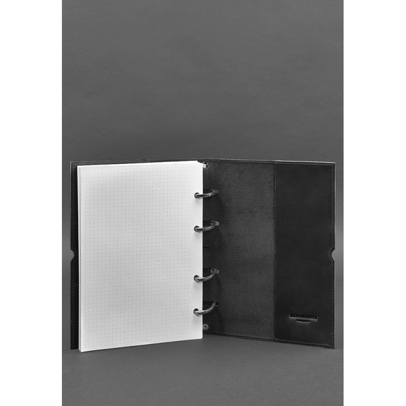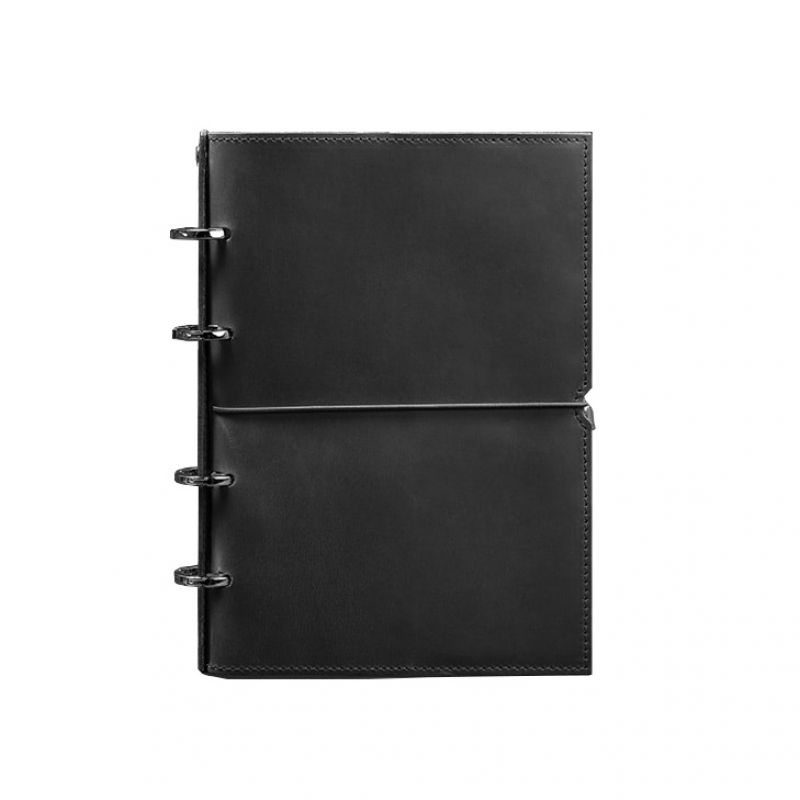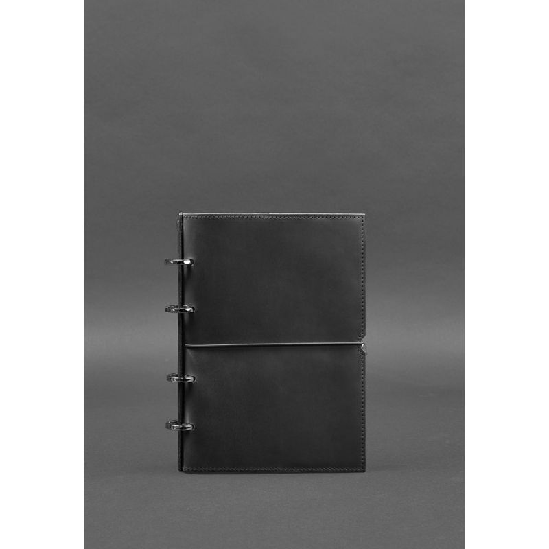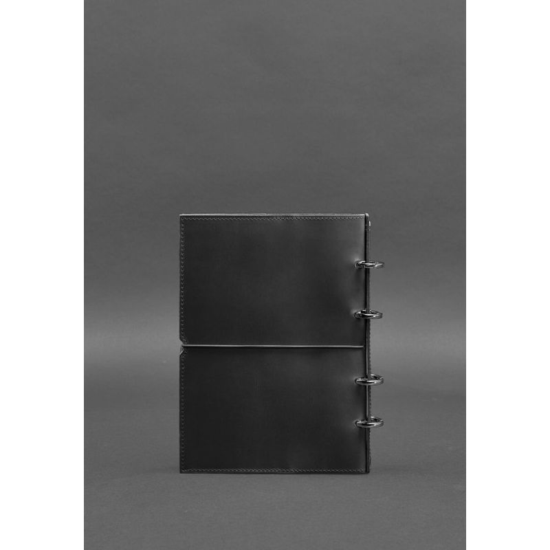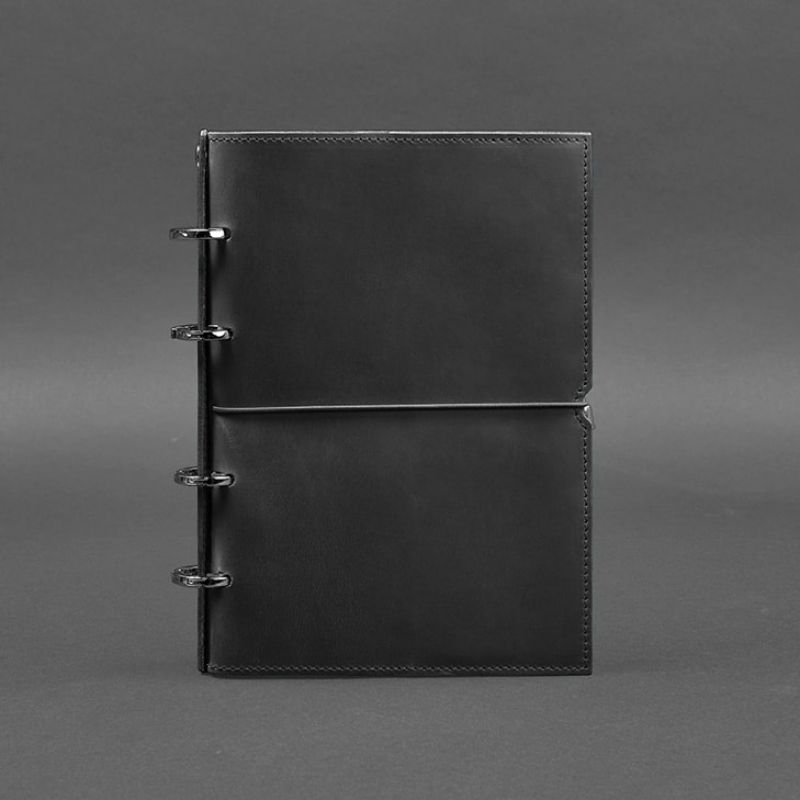 Кожаный блокнот А5 на кольцах (софт-бук) 9.0 в мягкой черной обложке
