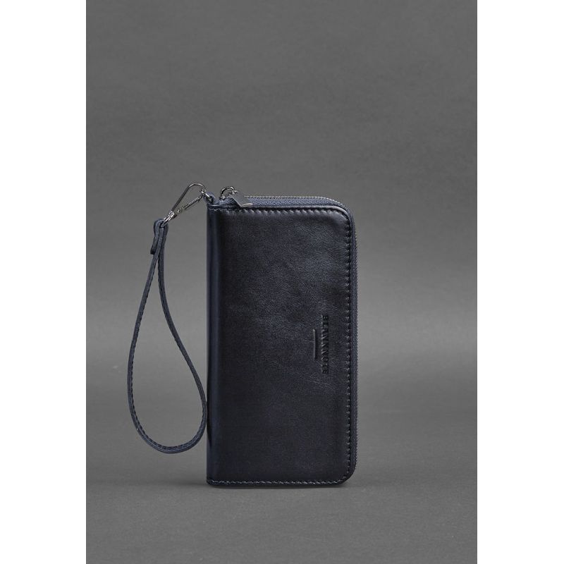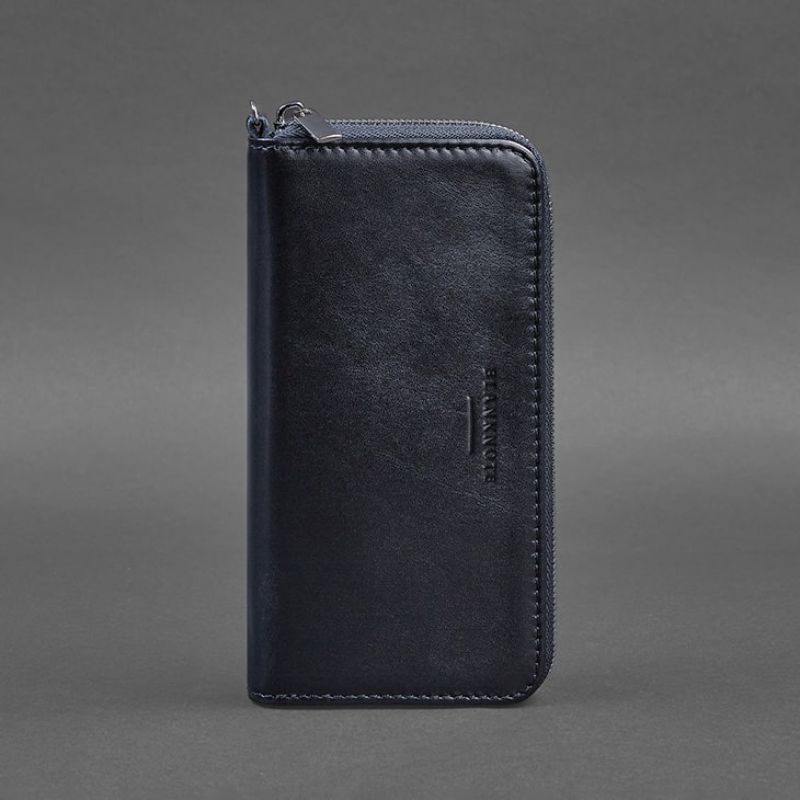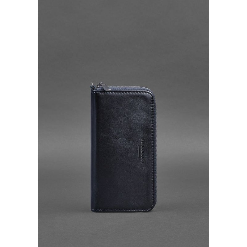 Кожаное портмоне на молнии 6.1 Темно-синее