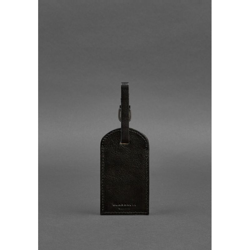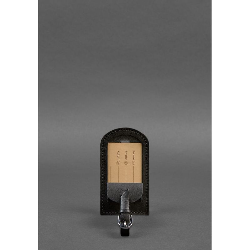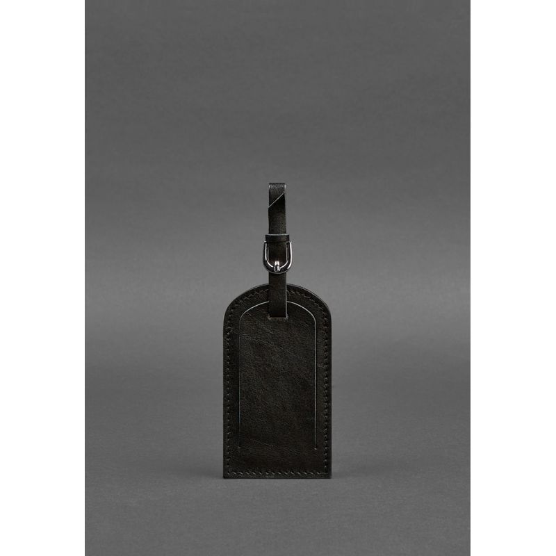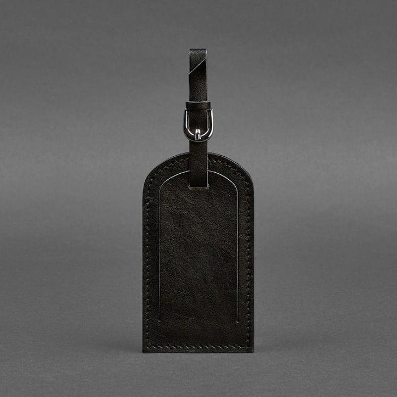 Черная стильная бирка для багажа изготовлена полностью вручную из прочной натуральной кожи.