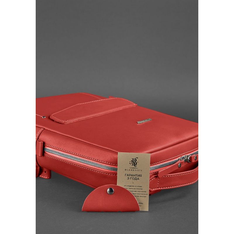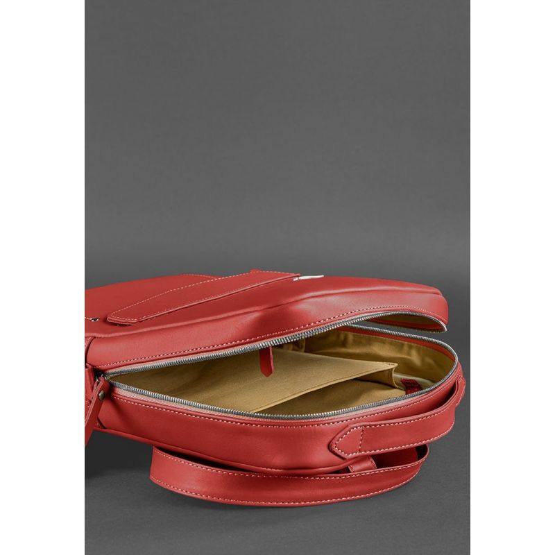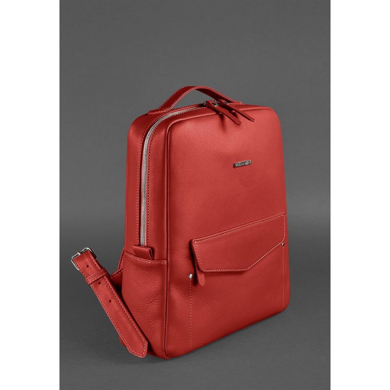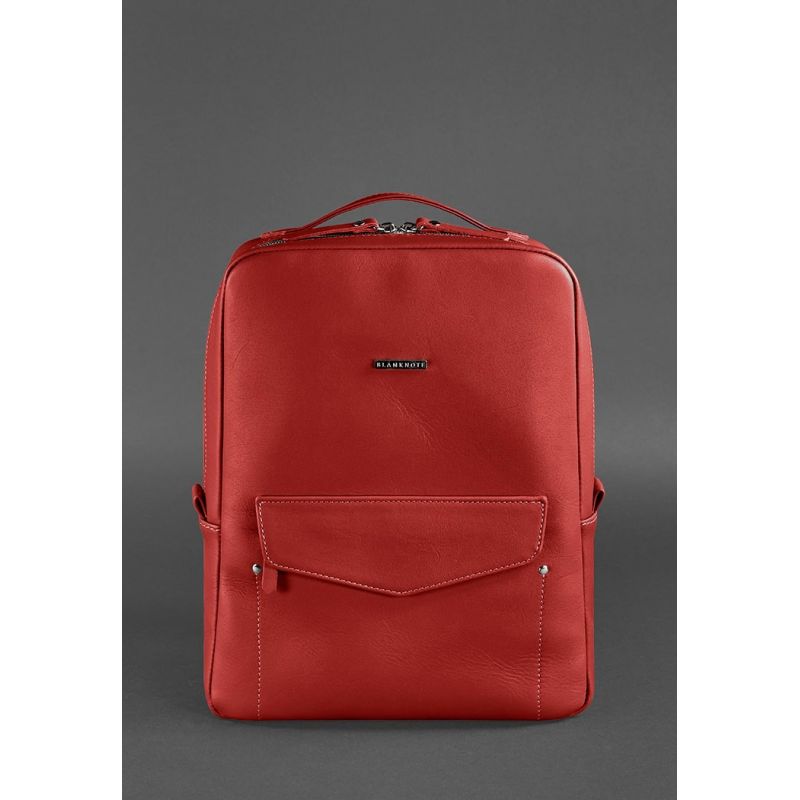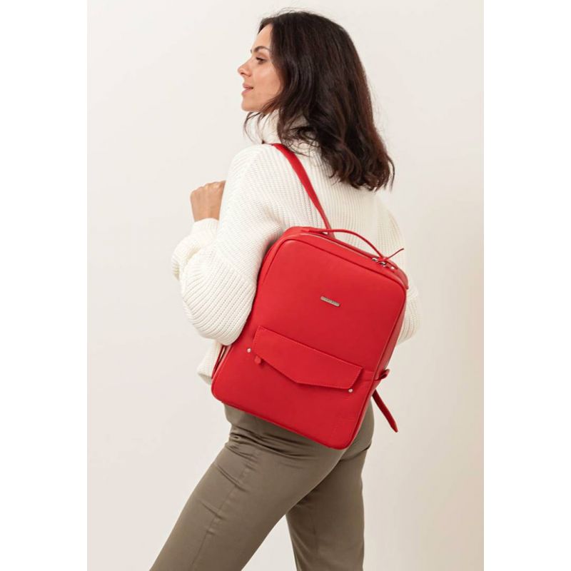 Кожаный городской женский рюкзак на молнии Cooper красный