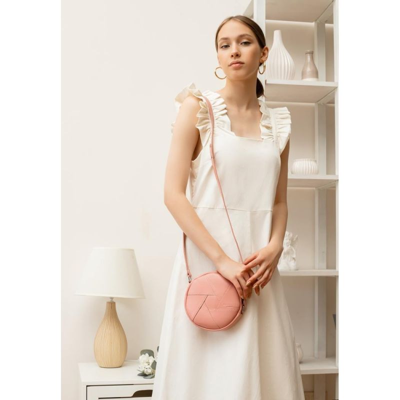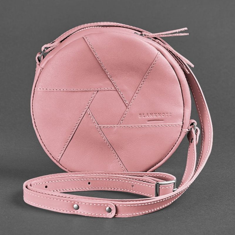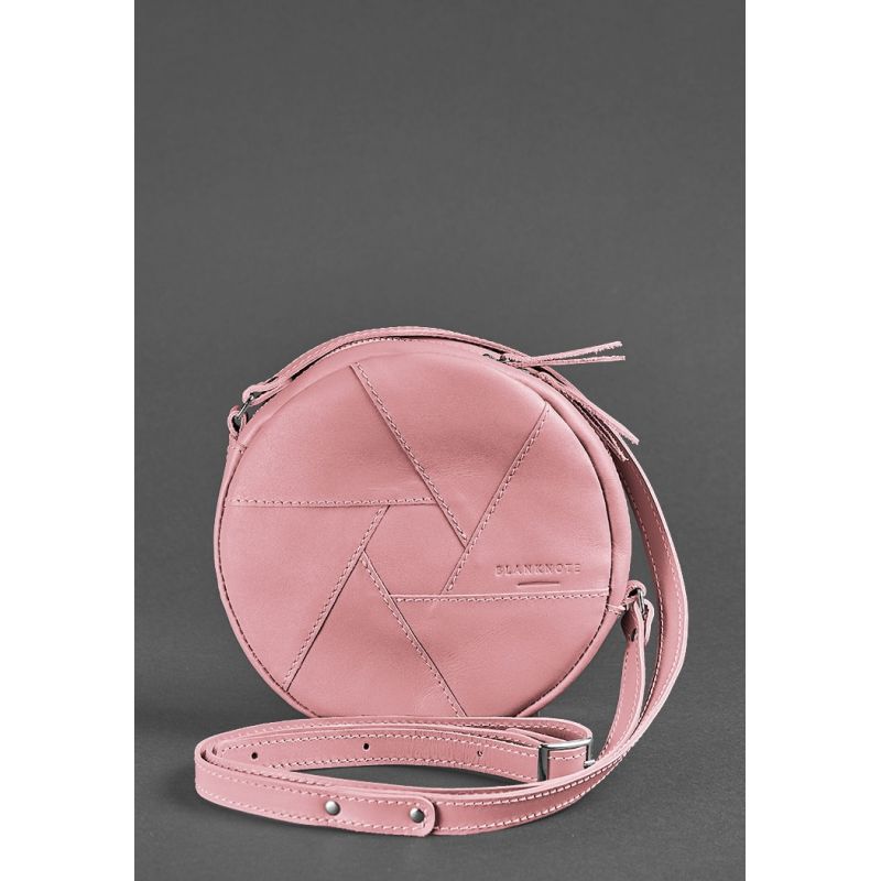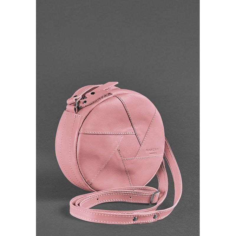 Кожаная круглая женская сумка Бон-Бон розовая