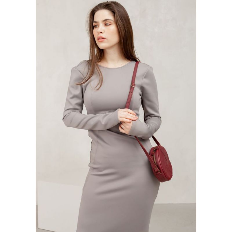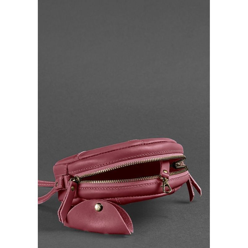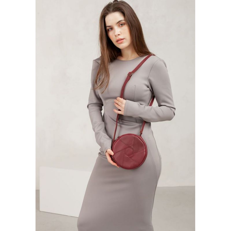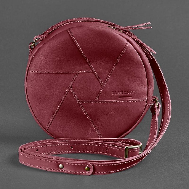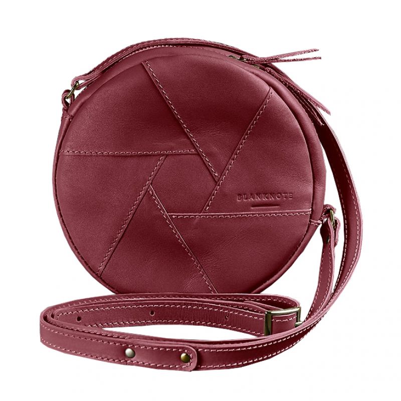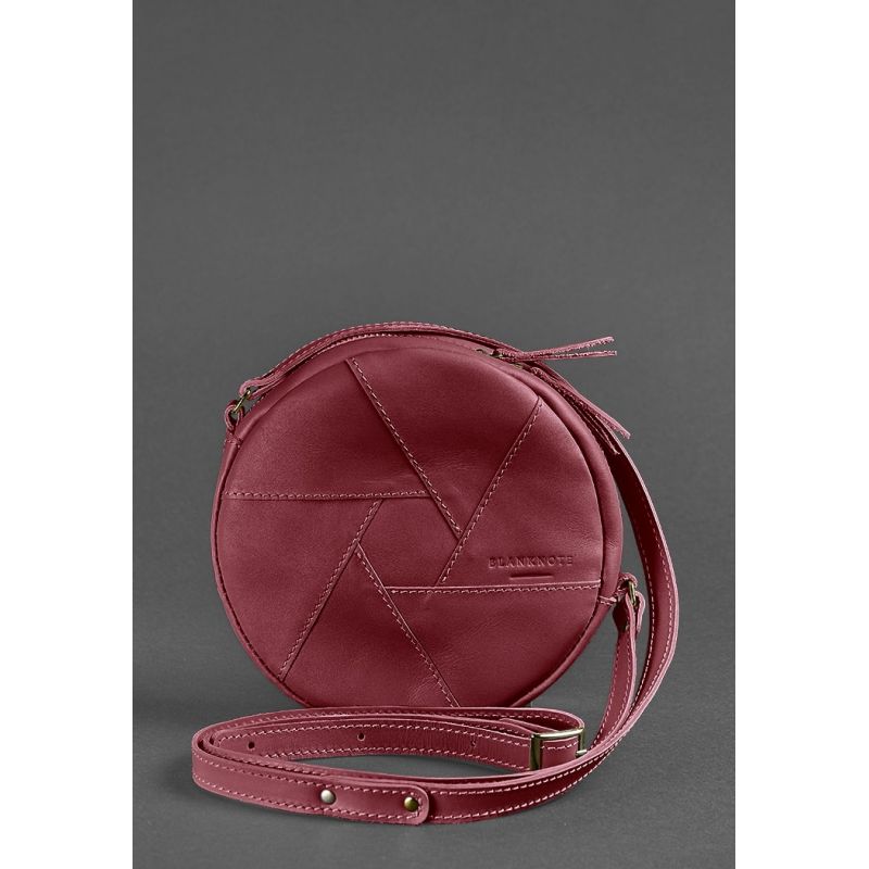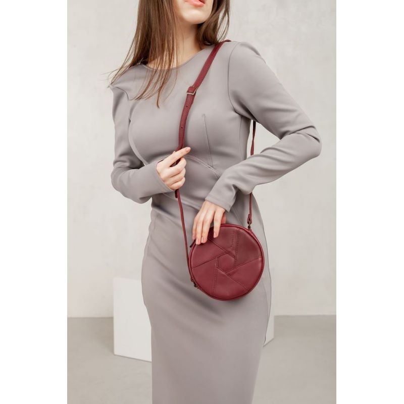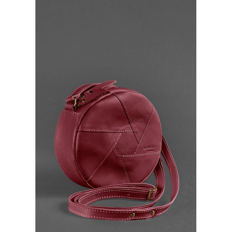 Кожаная круглая женская сумка Бон-Бон бордовая