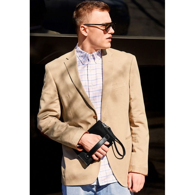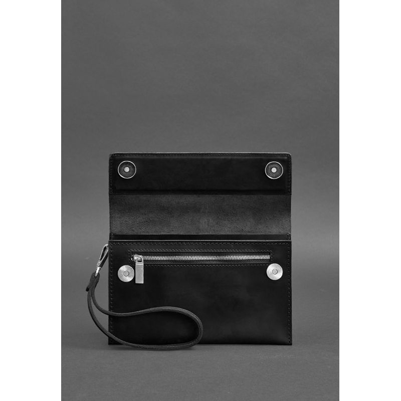 Удобный кожаный клатч-барсетка позволит держать все важные вещи под рукой. В нем найдется место для телефона, крупных купюр, небольших документов, карточек, монет и прочих мелочей. Предусмотрена съемная петелька, которая позволяет носить аксессуар на запястье. Также есть дополнительный держатель на задней части аксессуара.