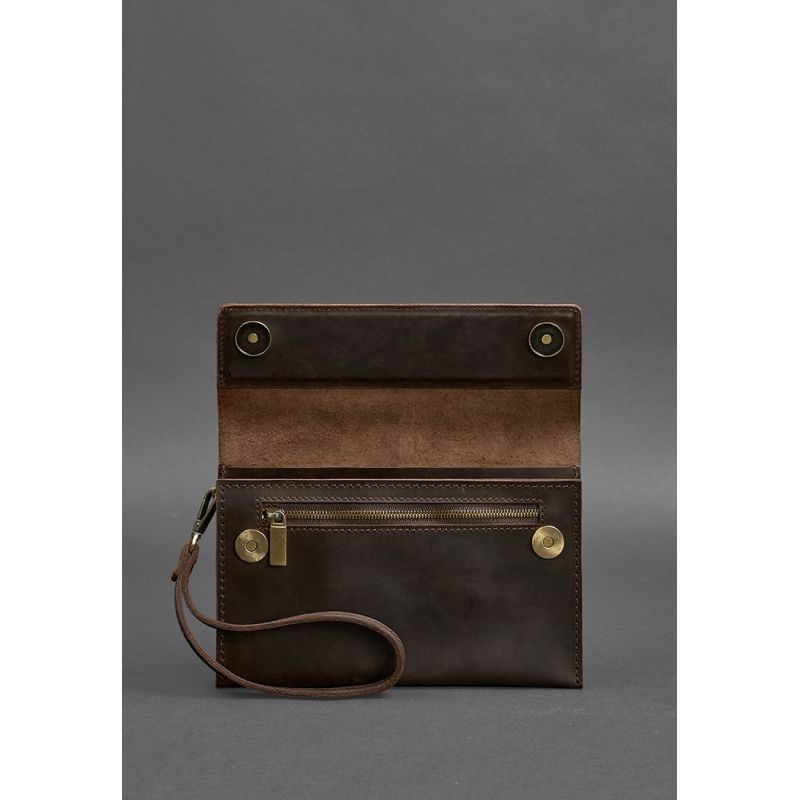 Элегантный и добротный клатч из плотной натуральной кожи понравится людям, которые ценят качественные и стильные вещи. Темно-коричневый цвет аксессуара в тандеме с винтажной натуральной кожей позволит легко сочетать клатч с деловым образом.