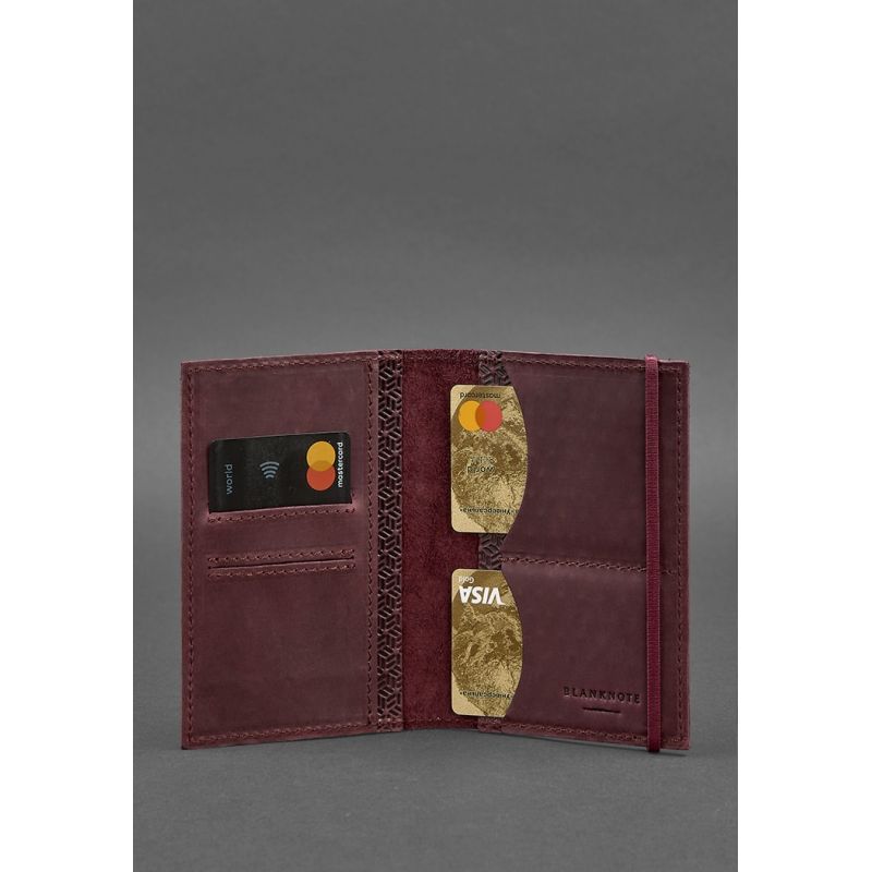 Функциональная обложка для паспорта в бордовом цвете, надежно сохранит ваши документы. Выполнена обложка из плотной натуральной кожи, которая обладает высокой прочностью и износостойкостью. Украшена обложка стильным тиснением, что дарит ей уникальную харизму и неповторимость. Тиснение выполнено четко и филигранно. Вам понравиться просто гладить рукой поверхность обложки. Внутри имеется несколько отделений для пластиковых карт и большой карман для других документов. Надежная резинка не даст обложке случайно раскрыться в сумке. К обложке прилагается гарантийный талон на 3 года и мини-блокнотик. Упакован аксессуар в стильную крафтовую коробку. Изделие выполнено полностью вручную. Гарантия на обложку - 3 года с момента покупки. Фурнитура и комплектация может быть изменена производителем