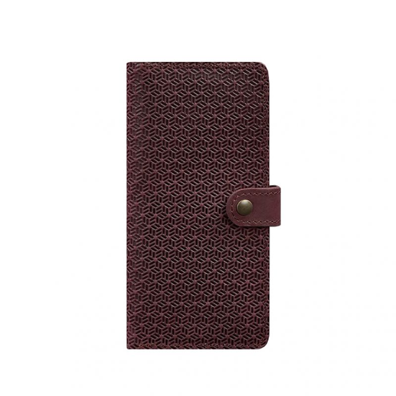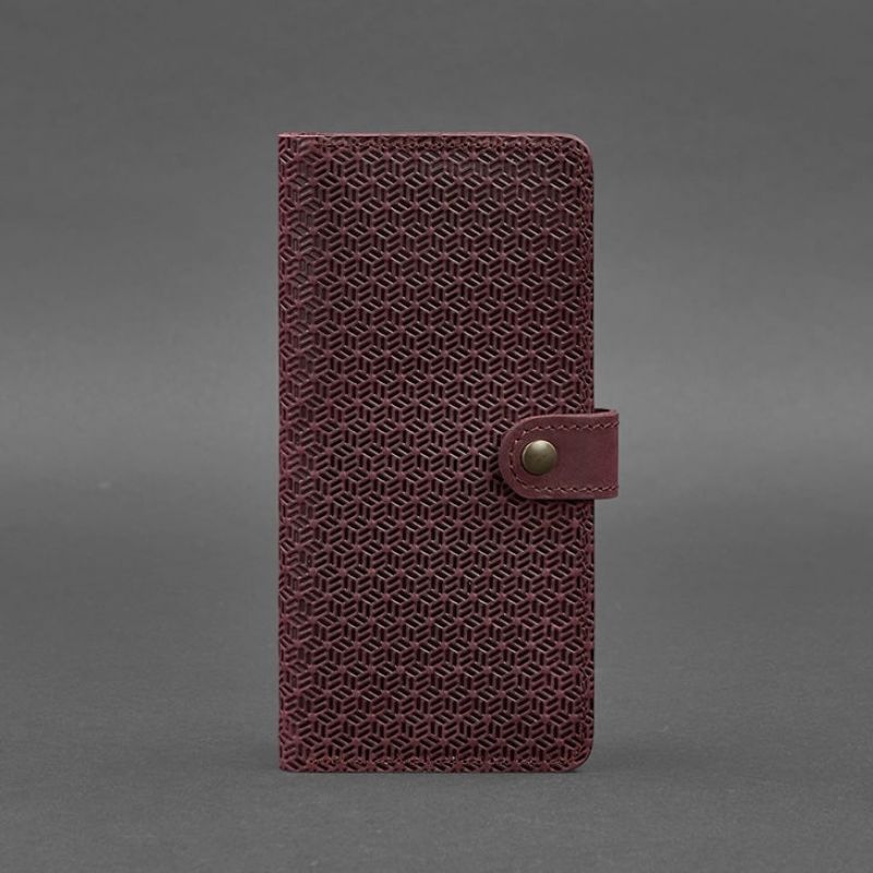 Хотите купить качественный женский кошелек? Обратите внимание на портмоне ручной работы из натуральной кожи. Основной изюминкой аксессуара является тиснение, которое украшает поверхность портмоне. Тиснение выполнено четко и аккуратно. Вам понравиться держать портмоне в руках! А темный и насыщенный бордовый цвет добавляет аксессуару нотку благородства и изысканности.