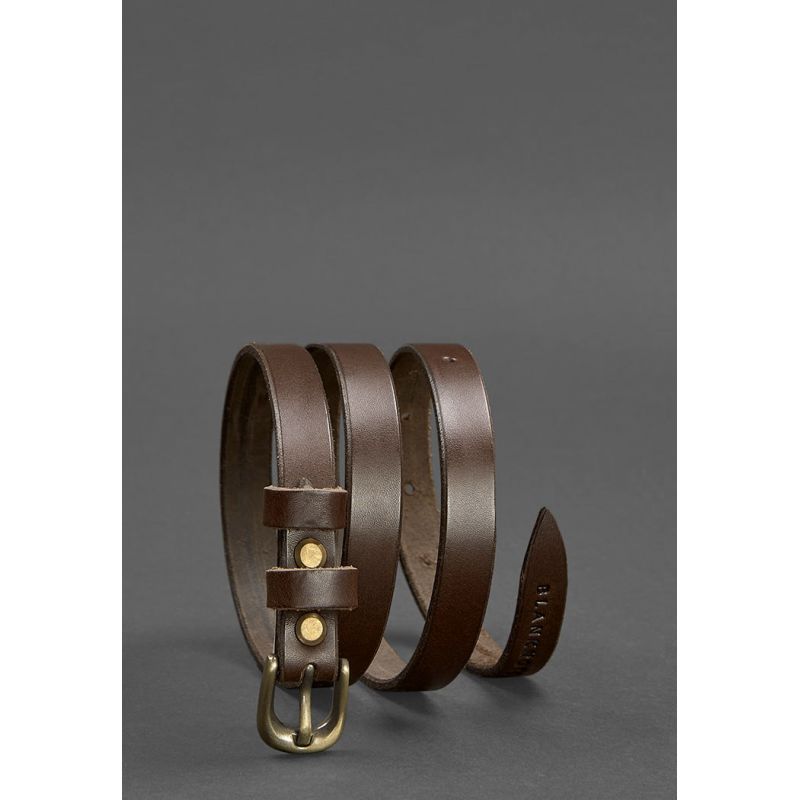 Женский кожаный узкий ремень 15 мм Коричневый