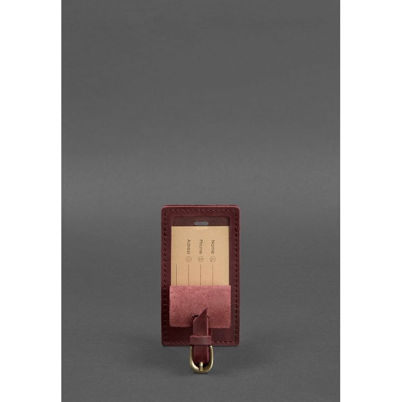 Кожаная бирка для багажа 3.0 Бордовая Crazy Horse