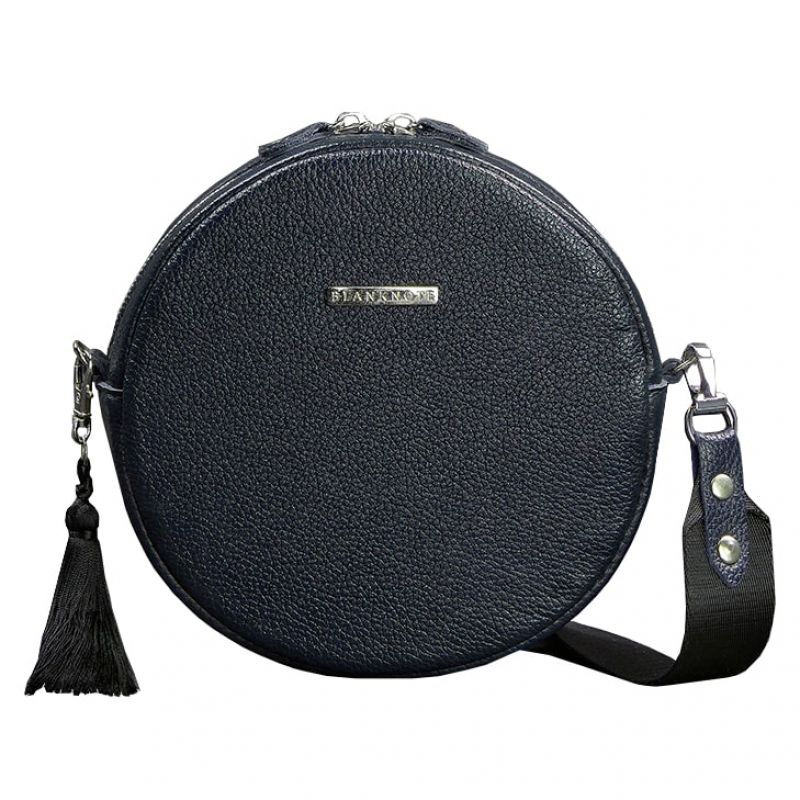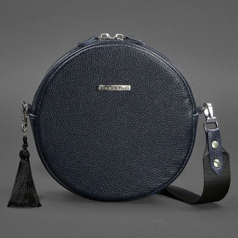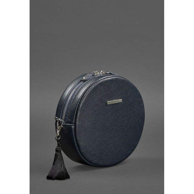 Круглая кожаная женская сумочка Tablet темно-синяя
