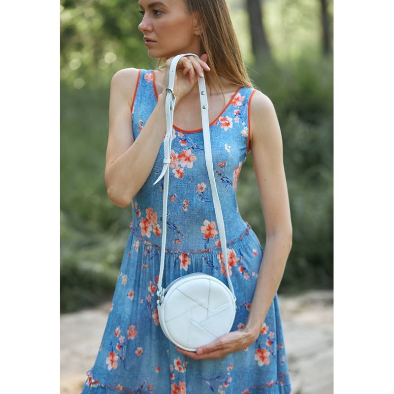 Длину плечевого ремешка можно регулировать. Пошит аксессуар вручную из натуральной белой кожи.
