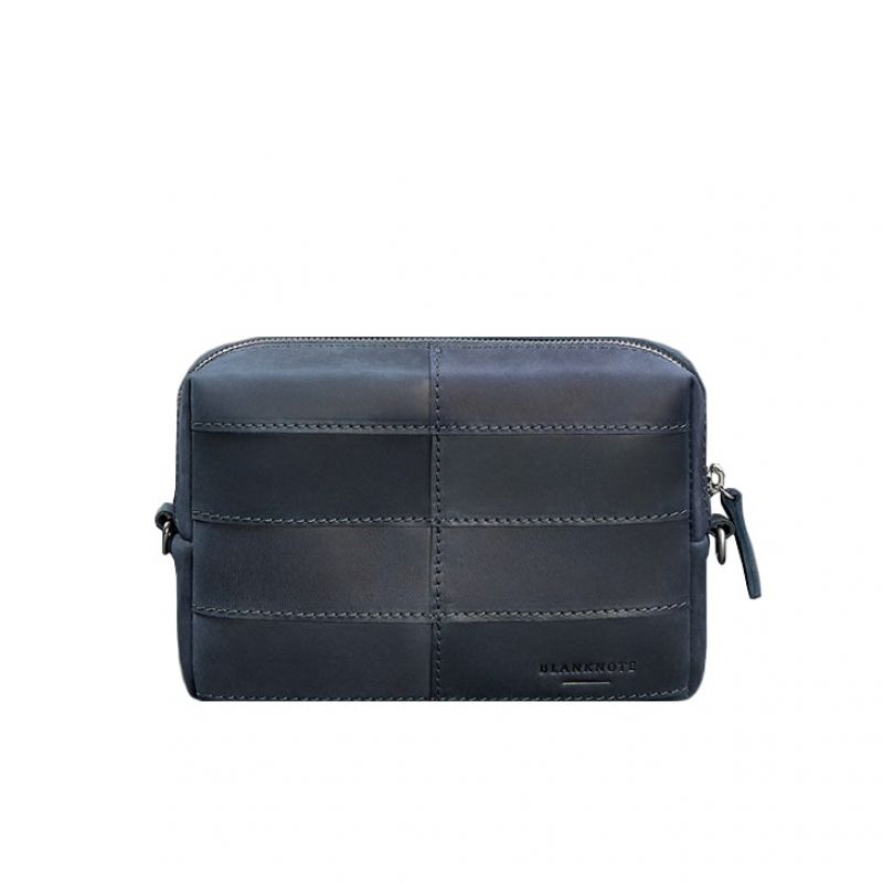 Кожаная косметичка-несессер 3.1 Темно-синяя Crazy Horse