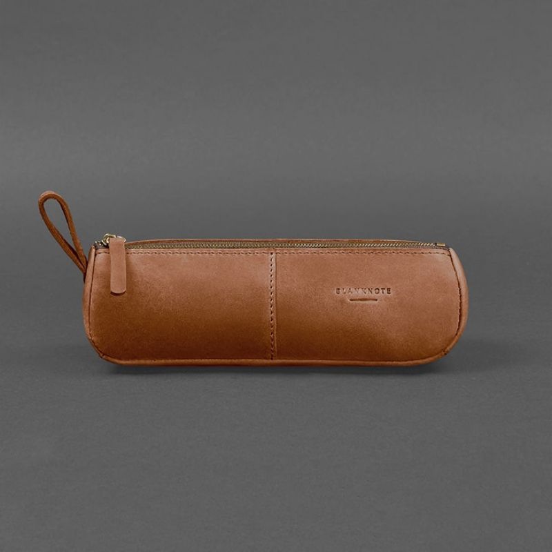 Светло-коричневый кожаный пенал-несессер можно использовать для хранения любых мелких вещей. Такой аксессуар будет хорош в качестве пенала, чехла для очков, органайзера для гигиенических принадлежностей и прочих мелочей.