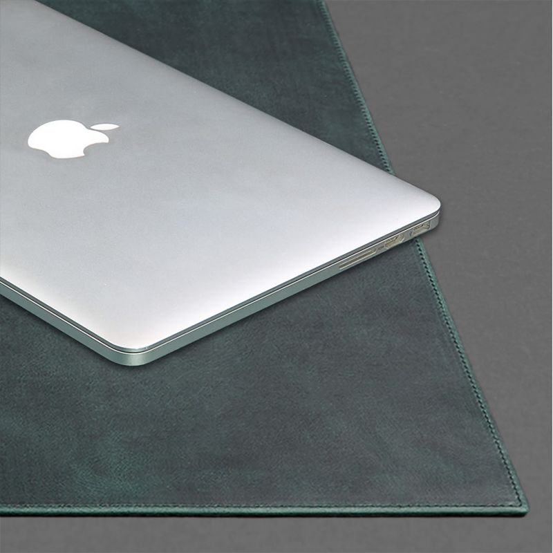 Бювар – надежная защита для поверхности письменного стола и изысканный предмет интерьера кабинета руководителя, переговорной комнаты, стойки ресепшен и т.д. Кожаный бювар придаёт классический и солидный вид письменному столу, способствует мягкому и комфортному письму любыми ручками. Изготовлена подложка полностью вручную. Для верхней части бювара использовалась натуральная кожа Crazy Horse в красивом зеленом цвете. Внутри бювар уплотнен кожкартоном. Нижняя часть – качественный кожзам, благодаря чему, даже на лакированных поверхностях, изделие не скользит. Бювар – отличный вариант практичного и солидного подарка для делового человека. В нашей мастерской вы можете заказать индивидуальное изготовление подложек для стола по вашим размерам (в диапазоне до 110 на 60 см) за дополнительную плату. Стоимость уточняйте у менеджера.  Бювар всегда будет солидным и практичным деловым подарком. Для корпоративных клиентов мы предоставляем услугу брендирования изделий. На бювары можно нанести тиснение с логотипом или лозунгом компании. Это имиджевое решение подчеркнет особый статус вашей компании. Гарантия на аксессуар - 3 года с момента покупки. ВНИМАНИЕ! Выделка данной кожи предполагает естественное появление на ней царапин и потертостей в ходе использования! От этого изделие становится более индивидуальным и приятным, это оценят настоящие поклонники винтажного стиля:)  А так же первое время кожа может краситься при сильном трении об другие предметы  - это особенность её выделки, постепенно этот эффект уменьшается,  кожа полируется и приобретает чуть глянцевый эффект. Фурнитура и комплектация может быть изменена производителем