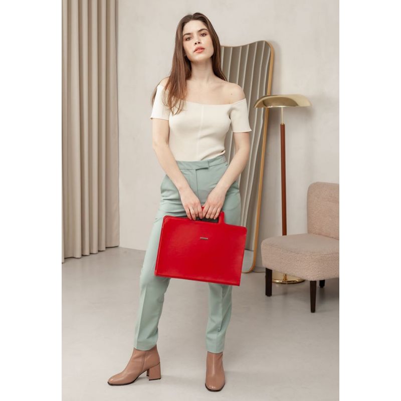 Оригинальная красная сумка для ноутбука и документов подчеркнет статус и стиль обладательницы.