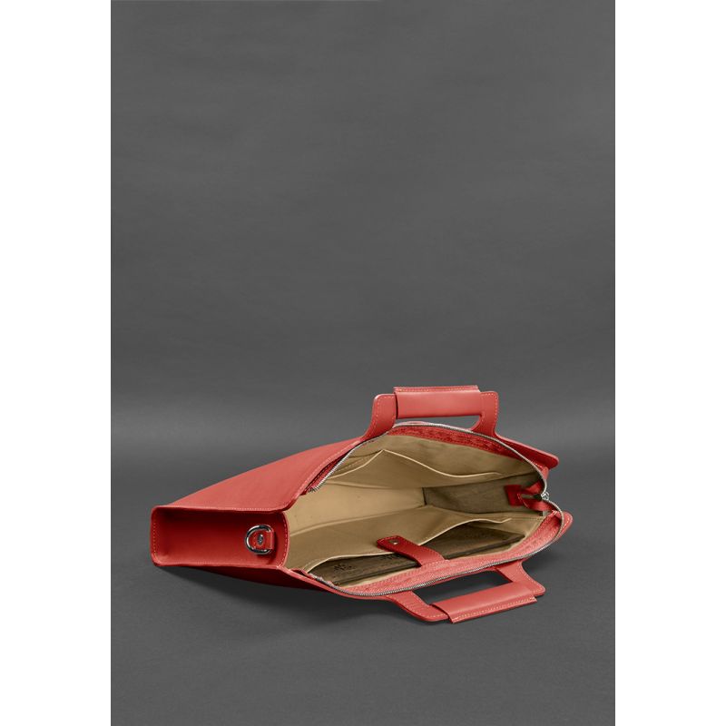 Женская кожаная сумка для ноутбука и документов красная