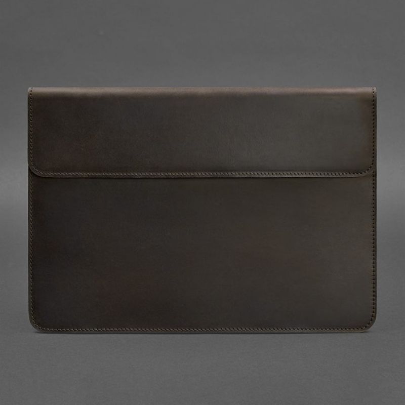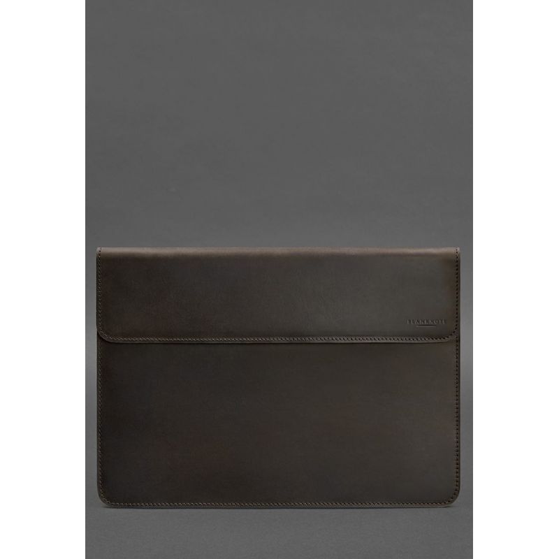 Кожаный чехол-конверт на магнитах для MacBook 15-16 дюйм Темно-коричневый Crazy Horse