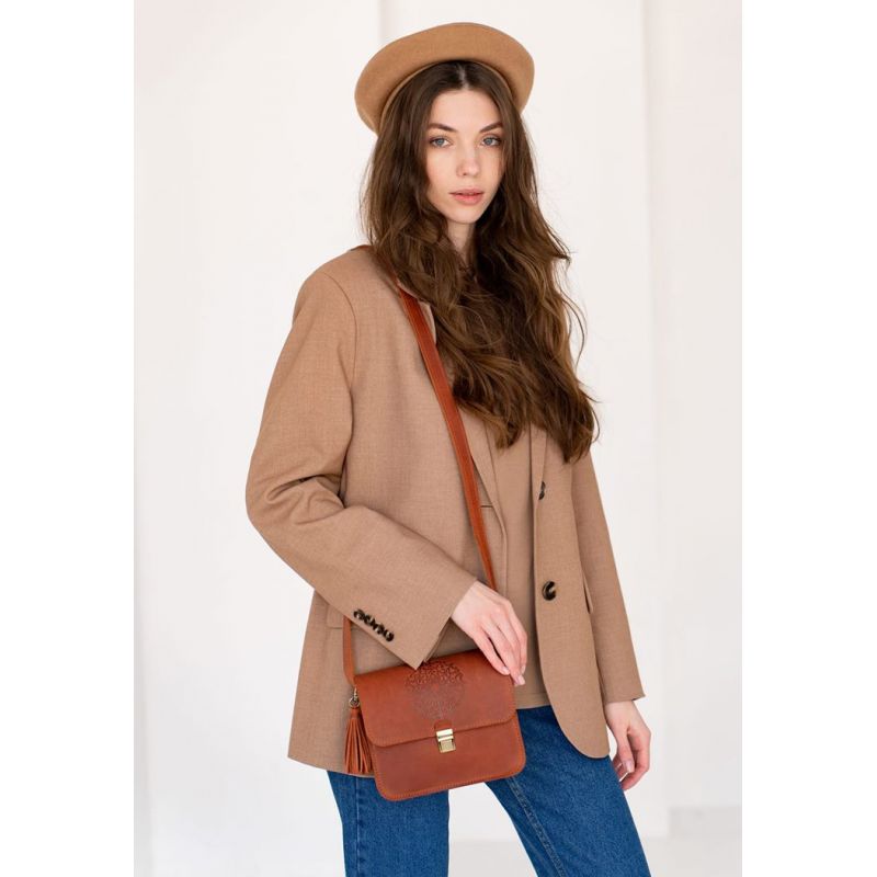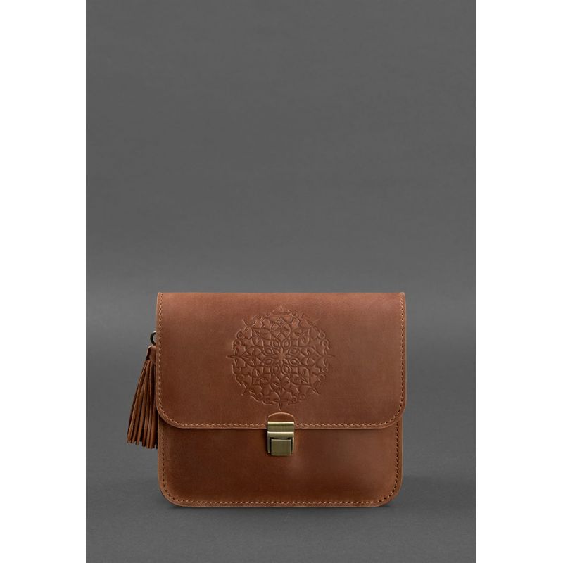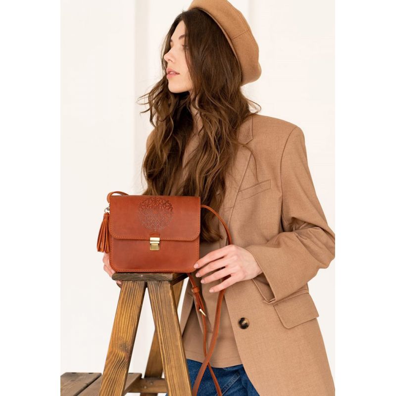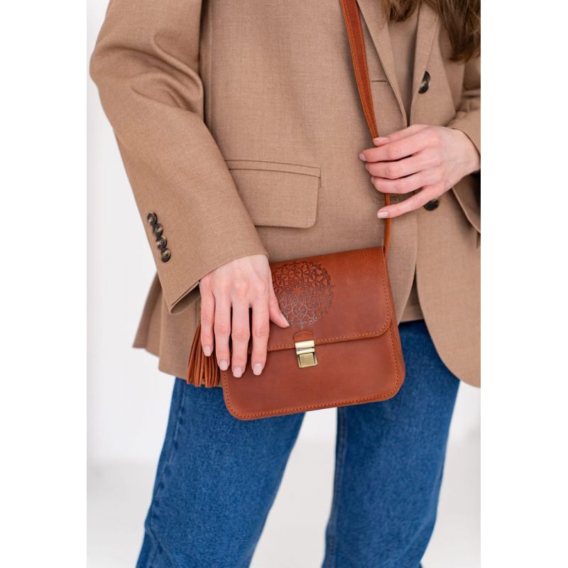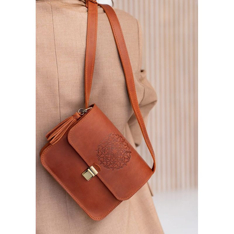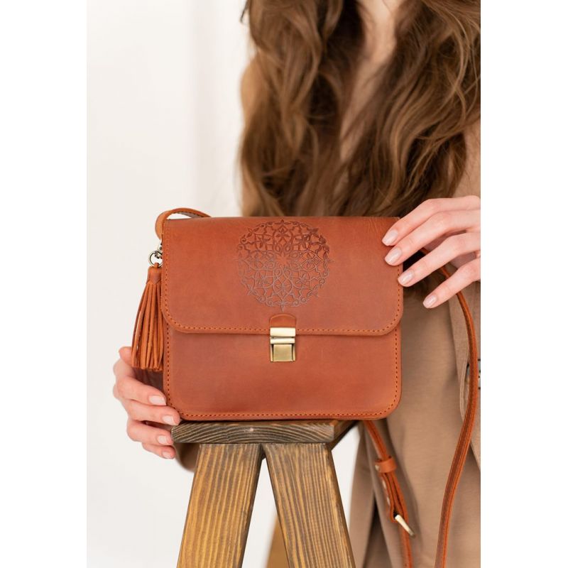 Сумочки кросс-боди настолько тесно вошли в жизнь девушек, что уже тяжело представить гардероб современной барышни без такой сумочки. Такая модель поистине универсальна и невероятно удобна! Куда бы Вы не пошли, важные мелочи всегда будут под рукой, но и руки будут свободны. Удобно! Не так ли? Но приятно, когда сумка не только удобна, а еще и красива. Наша бохо сумка Лилу именно такая. Очень стильное тиснение в виде индийской мандалы украшает клапан сумки. С такой сумочкой Вы всегда будете в центре внимания. Изготовлена сумка из натуральной кожи Crazy Horse. Эта кожа имеет красивую матовую поверхность, на которой со временем могут появиться небольшие потертости и царапинки, которые абсолютно не портят внешний вид аксессуара. Это выглядит очень стильно и винтажно. Два отделения и дополнительные карманы внутри сумки помогут оптимально распределить все вещи. Носить сумку удобно на плече или через плечо на длинном кожаном ремешке. Длина ремешка регулируется. По своему обычаю, для наших клиентов мы подготовили несколько приятных сюрпризов: Съемную кисточку, которая служит милым украшением и может использоваться как брелок. Холдер для наушников. Тетрадка с повторением мотива «мандала». Гарантия на сумку - 3 года с момента покупки. ВНИМАНИЕ! Выделка данной кожи предполагает естественное появление на ней царапин и потертостей в ходе использования! От этого изделие становится более индивидуальным и приятным, это оценят настоящие поклонники винтажного стиля:)  А так же первое время кожа может краситься при сильном трении об другие предметы  - это особенность её выделки, постепенно этот эффект уменьшается,  кожа полируется и приобретает чуть глянцевый эффект. Фурнитура и комплектация может быть изменена производителем