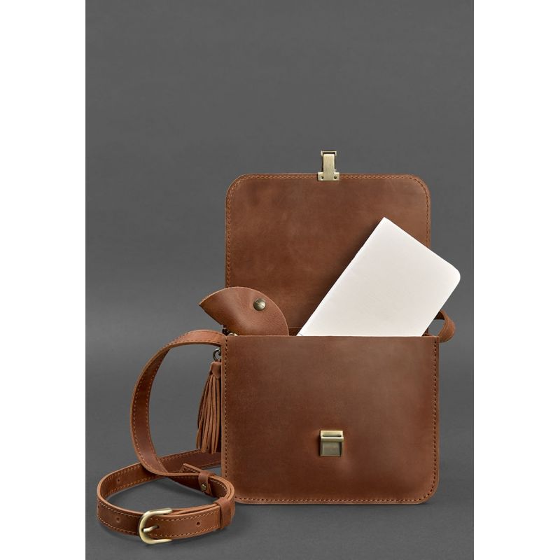 Кожаная женская бохо-сумка Лилу светло-коричневая Crazy Horse