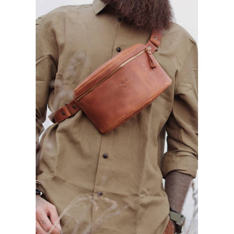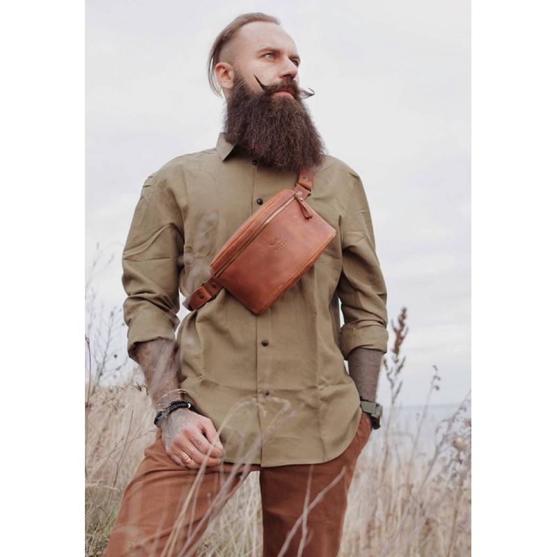 Кожаная сумка-бананка - стильное дополнение образа. Сумочка очень легкая и имеет лаконичный дизайн. Такая сумочка будет незаменима в повседневной жизни и во время путешествий.