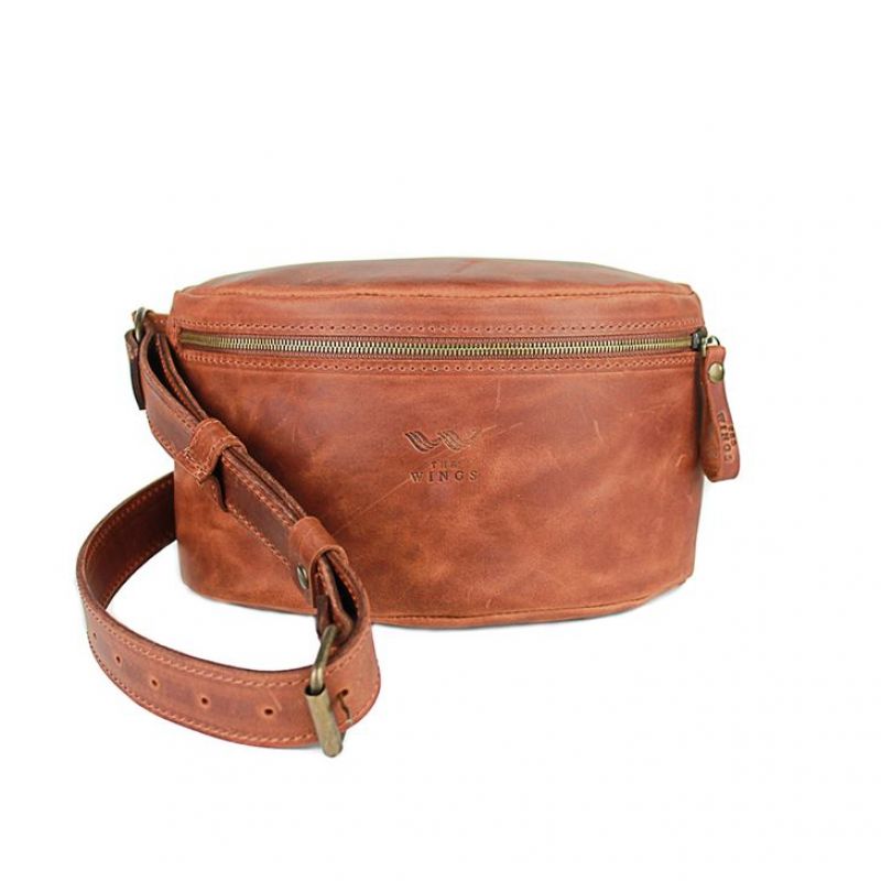 Кожаная поясная сумка светло-коричневая винтажная